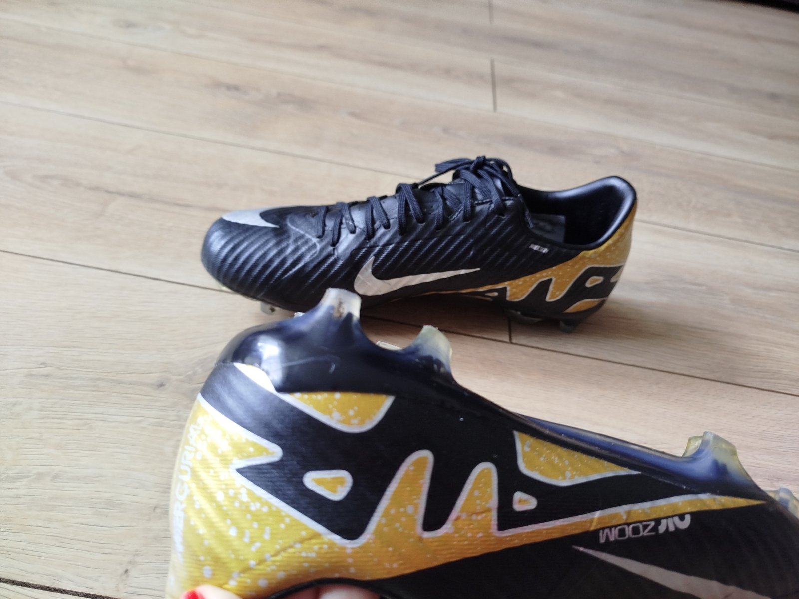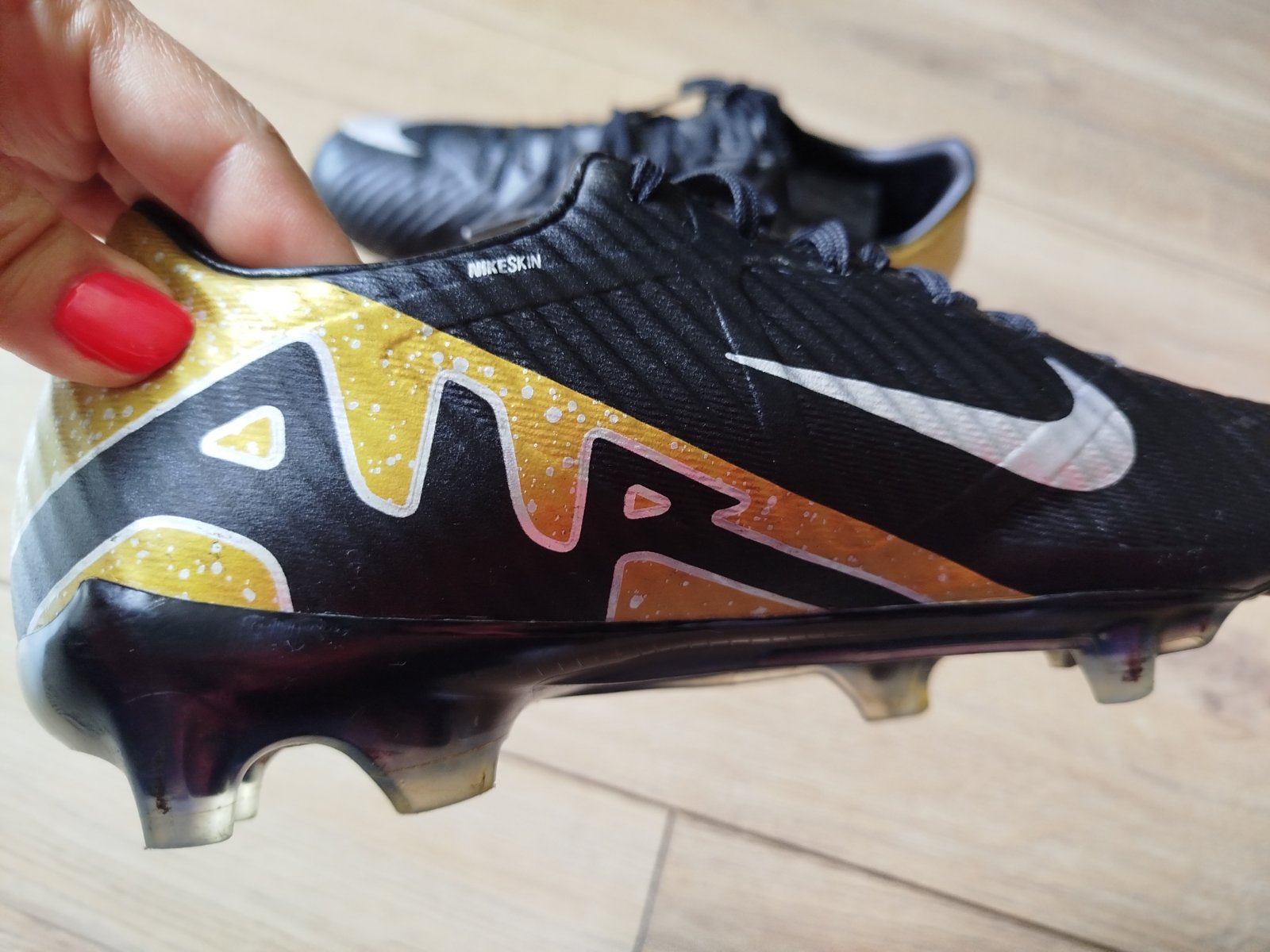 Predám kopačky Nike použité 4 krát,keďže syn mal zranenie,netrénoval a teraz su nám už malé .Kopačky kupované v Anglicku,veľmi ľahké,dobre sedia. Pôvodná cena 95 eur. Nafotene detaily.