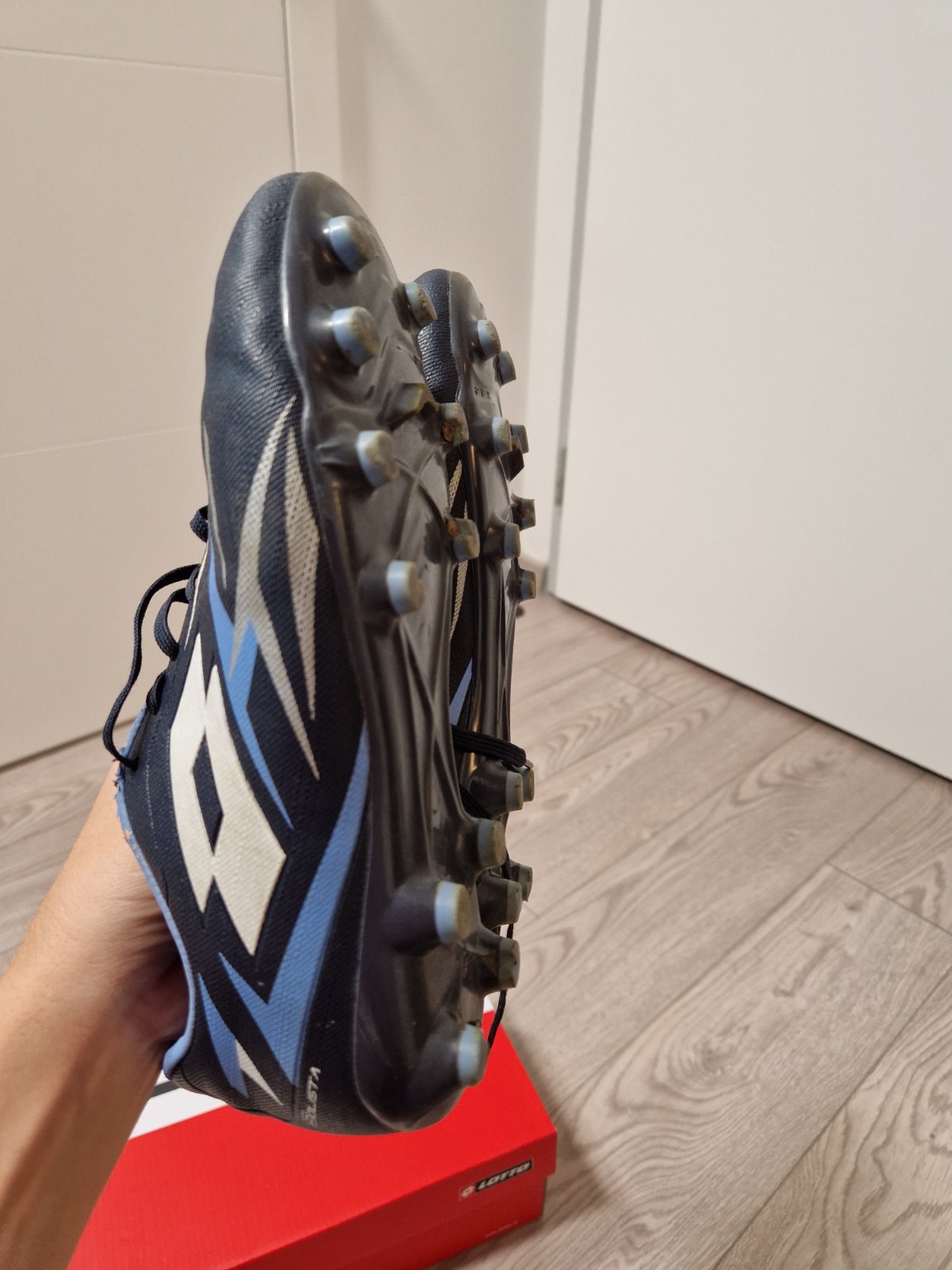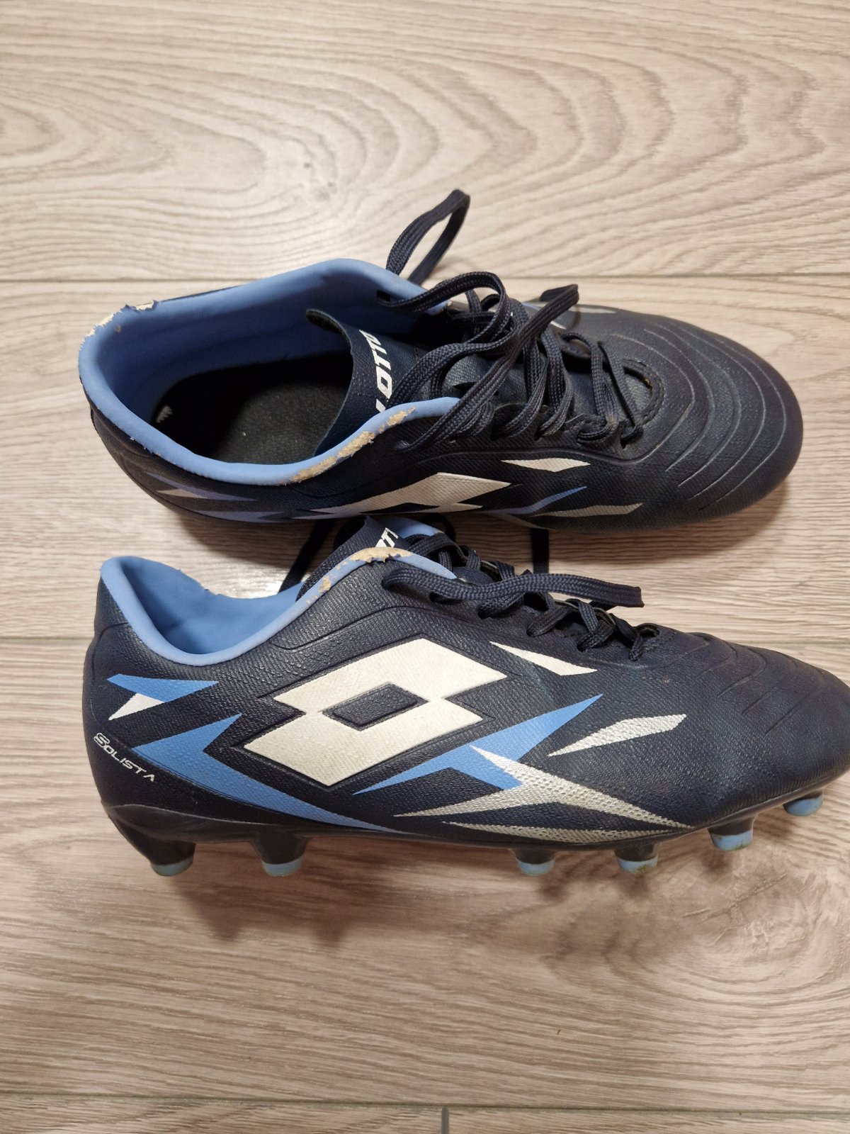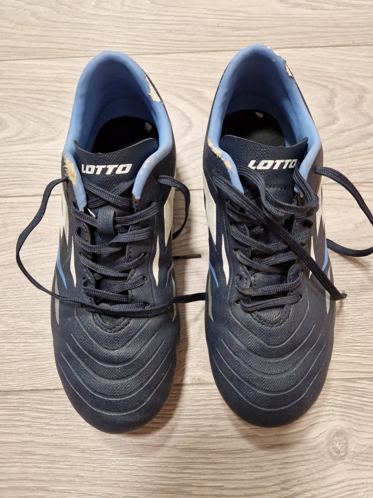 kopacky Lotto, suchnuta horna bledomodra cast, inak vyborny stav (nic ine sa na kopackach uz neda suchnut vdaka materialu)
