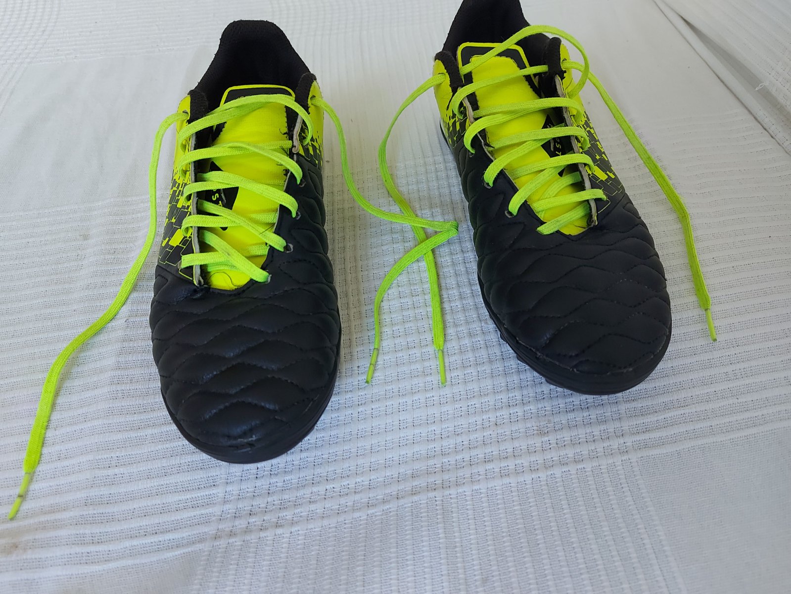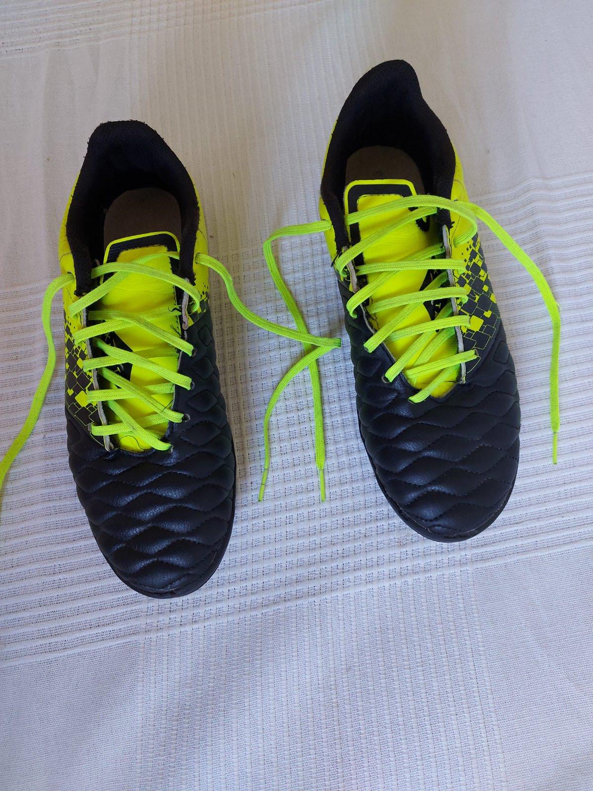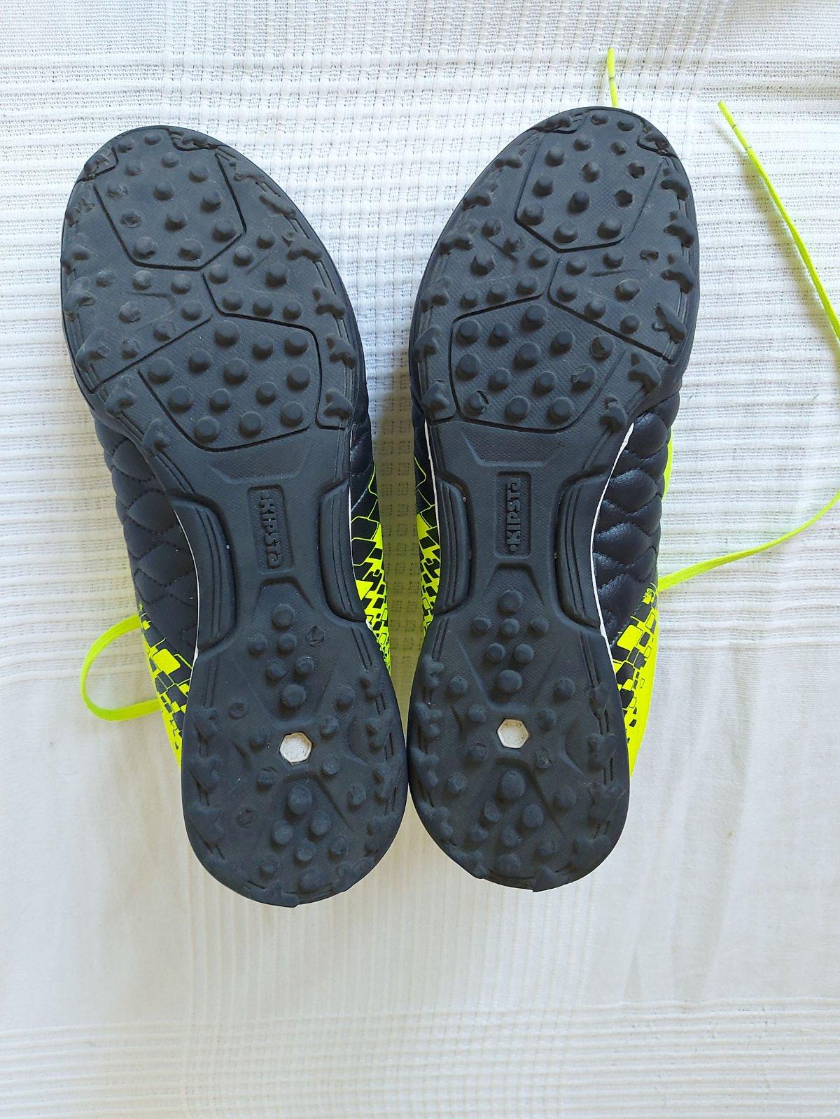 Predám používané turfy na umelú trávu. Značka Kipsta z Decathlonu. Veľkosť 40. Na špici ľavej nohy trochu poškodené, ale nerozlepujú sa. Možnosť vrátiť, ak by sa nepozdávali. Cena vrátane poštovného.