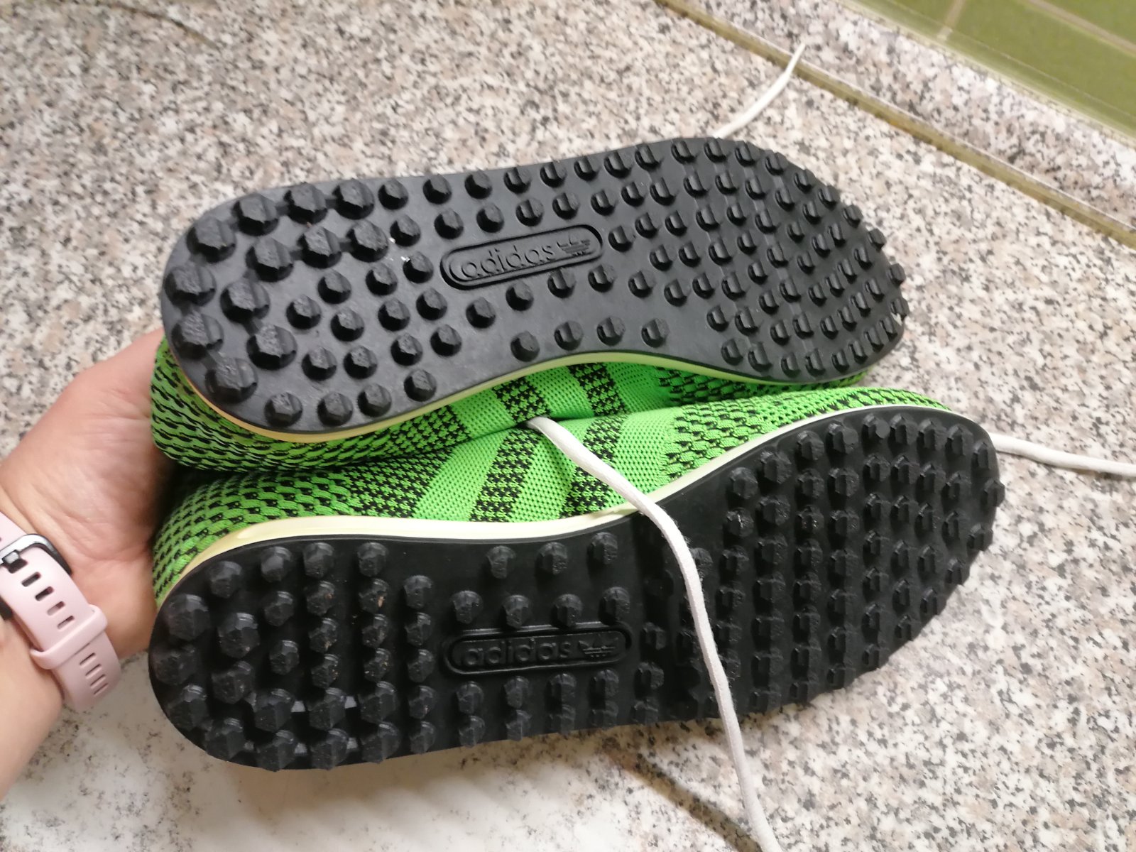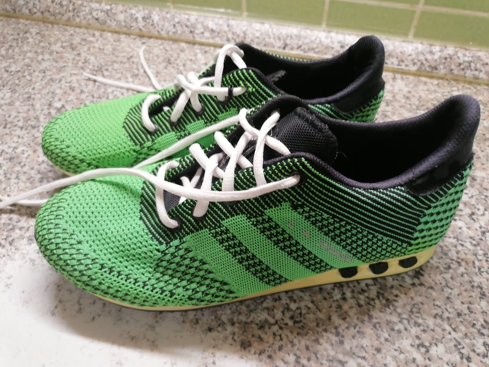 Turfy zn. Adidas, veľkosť 43. Majú len chybičky krasy a to vzadu ošuchanu tu čiernu časť a jeden kovový krúžok pri šnúrke je mimo látku. Viď foto. Vnútorná dĺžka vložky je 27,5 cm.
