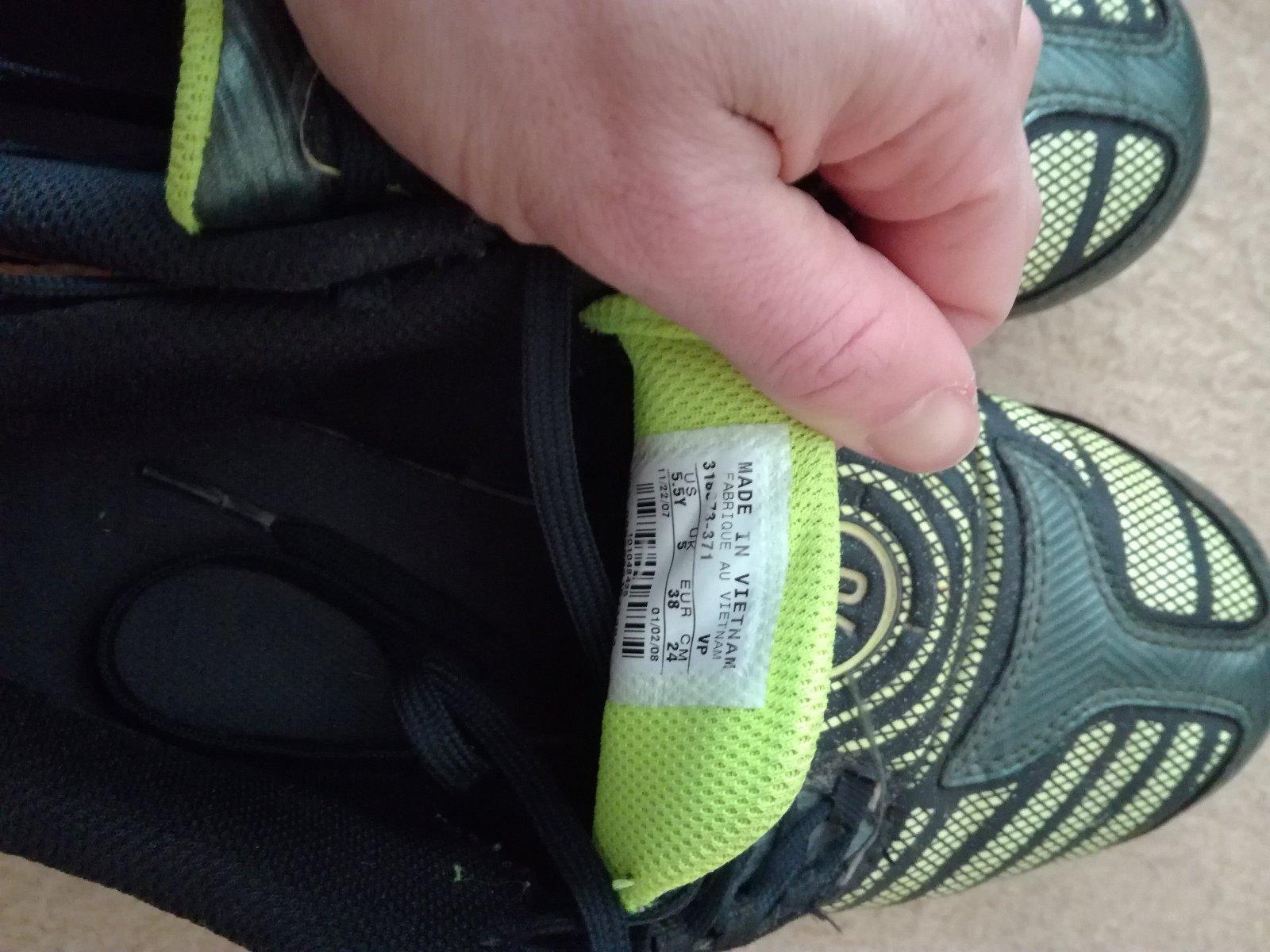 Kopačky využívané 1 necelú sezónu. Veľkosť je uvedené 38,5. Vnútorná dĺžka je 24 cm. Vzadu na prave päte je malá trhlina (foto), neovplyvňuje to funkčnosť. PC 95 eur