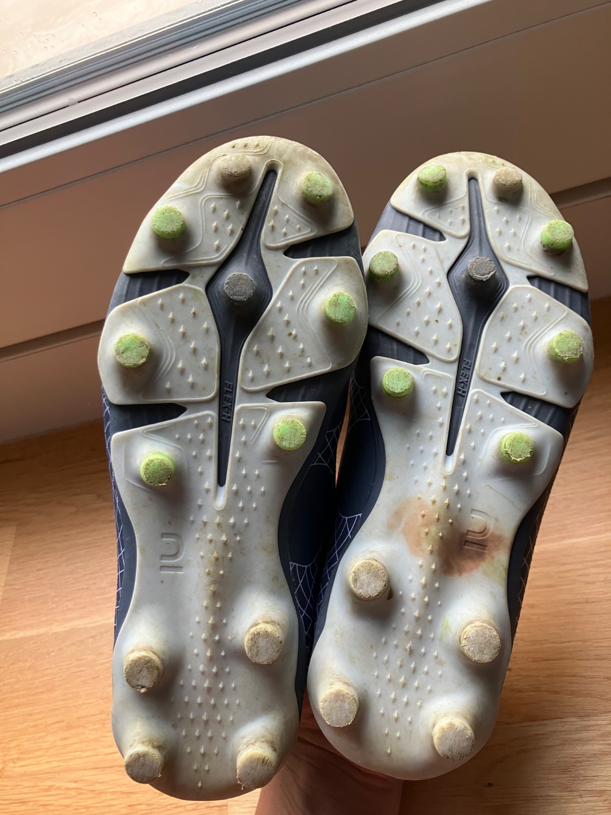 Zachovalé dámske kopačky, boli dvakrát obuté, sú béžovej farby v kombinácii so zelenou farbou, boli kupované v decathlone. Dĺžka vnútornej stielky je 27,3 cm