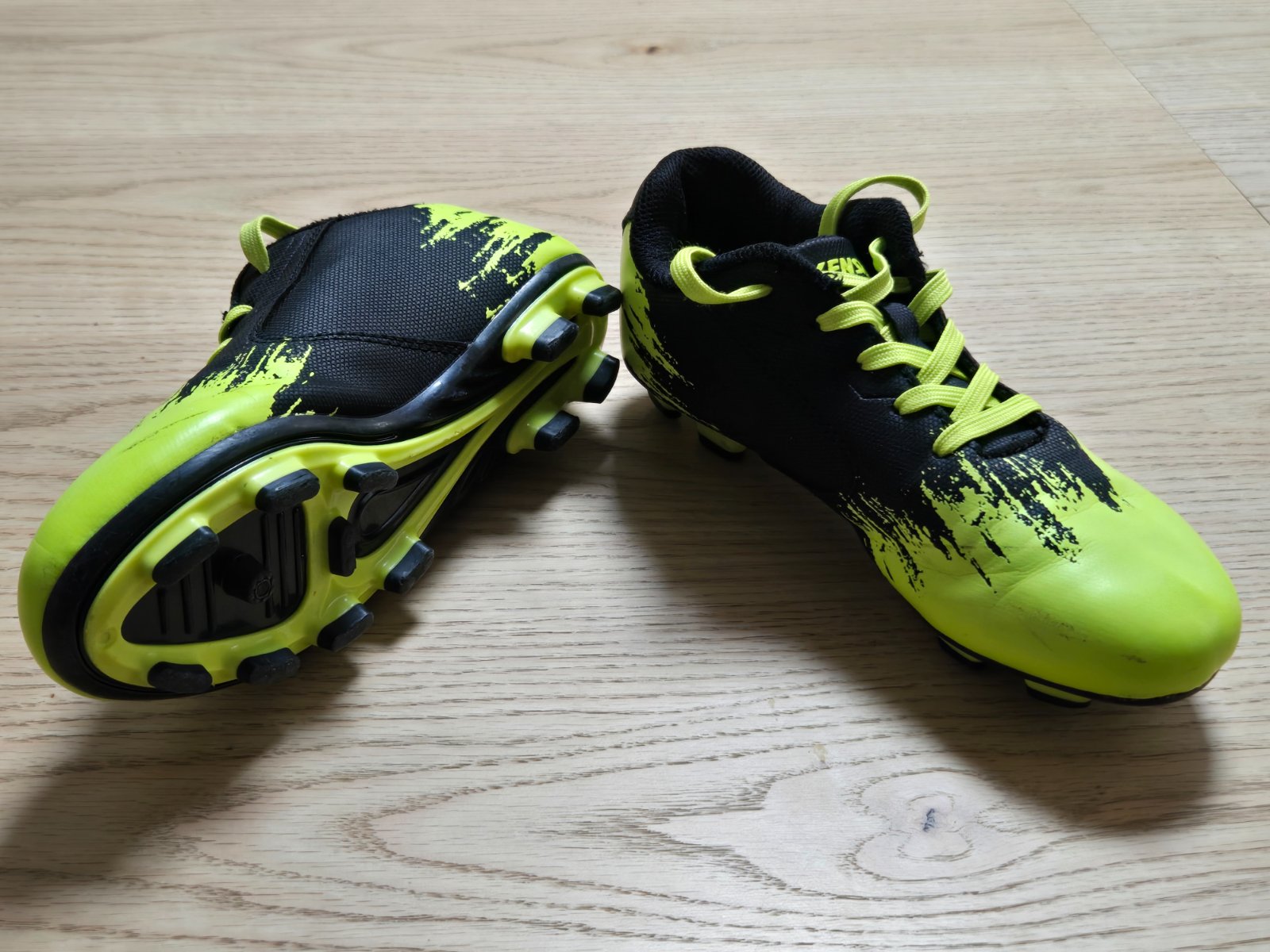 Zachovalé dámske kopačky, boli dvakrát obuté, sú béžovej farby v kombinácii so zelenou farbou, boli kupované v decathlone. Dĺžka vnútornej stielky je 27,3 cm