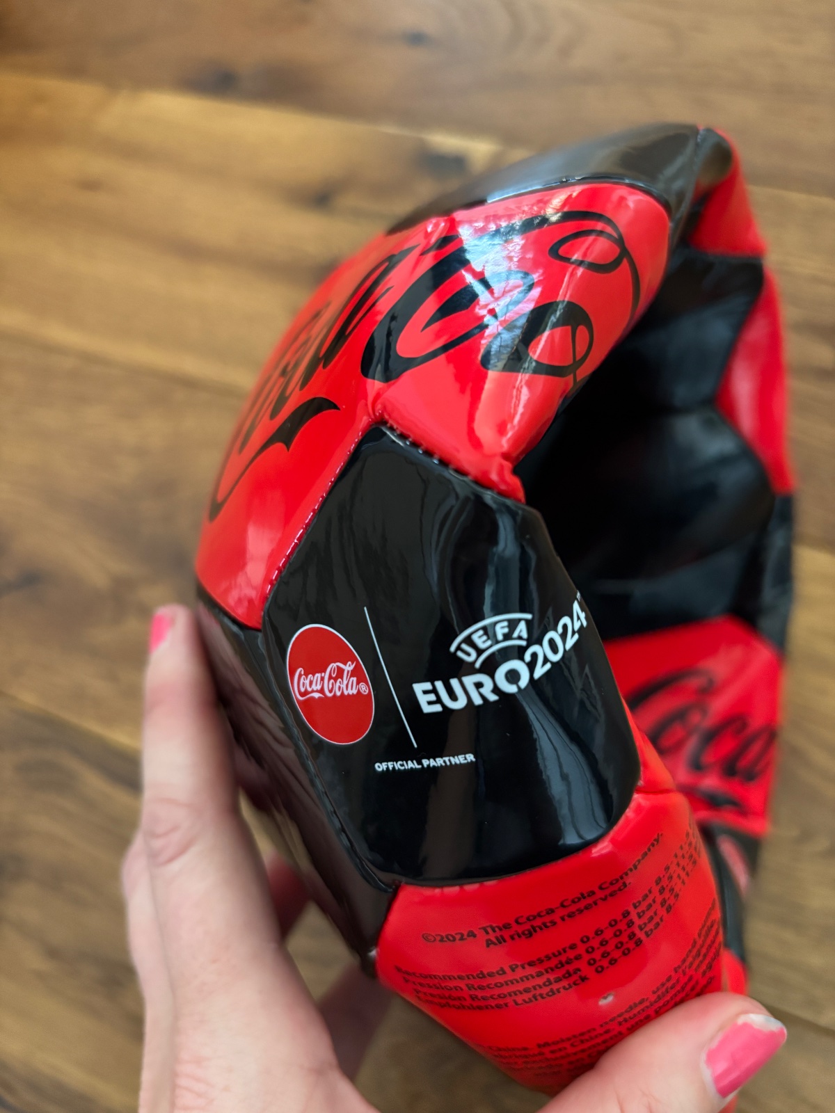 Na predaj nová ešte nenafukana lopta na futba Coca Cola pri príležitosti Euro 2024.