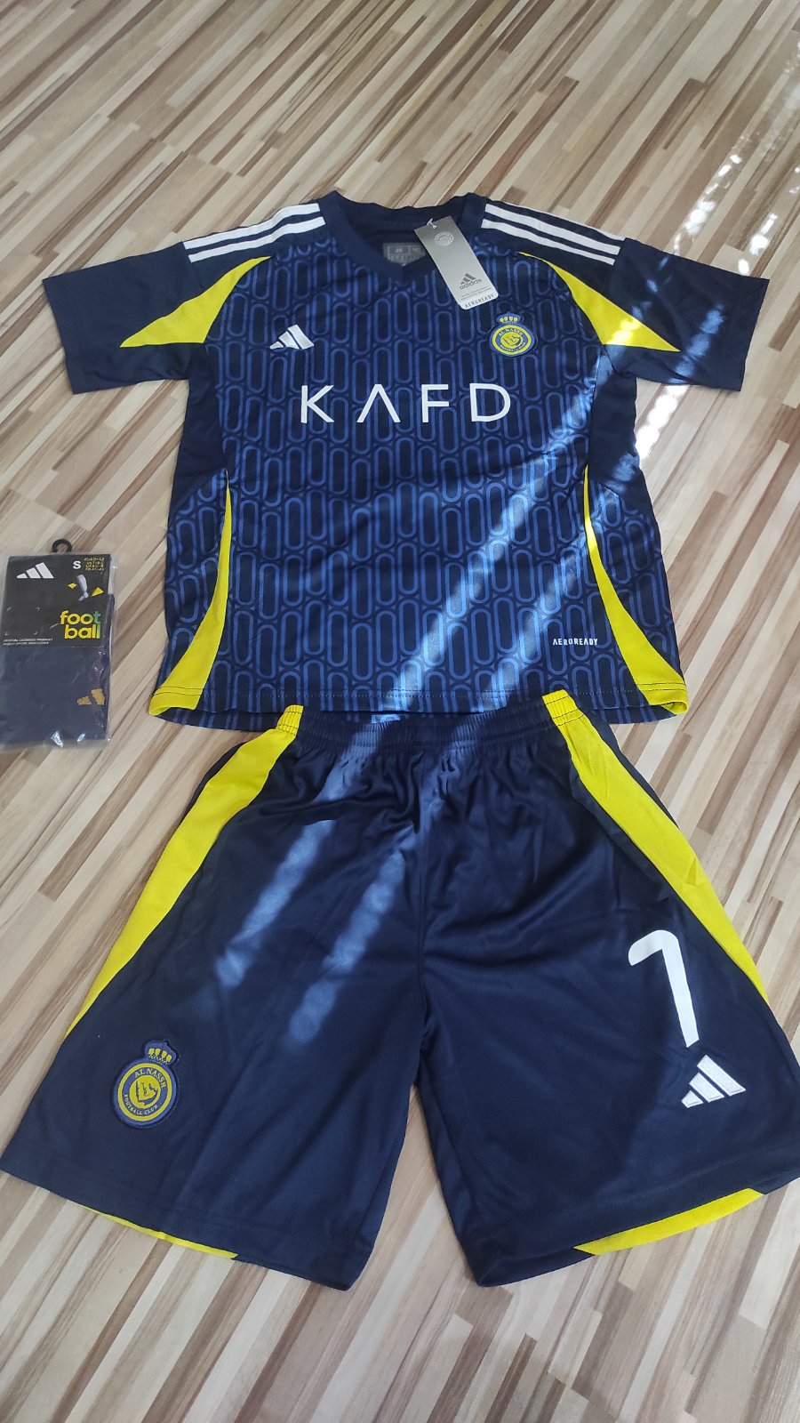 Ponúkam na predaj nový detský dres klubu Al nasrr s menom hráča Ronaldo. Je to dres aktuálnej sezóny 24/25. Dostupné veľkosti od 3-13 rokov. V prípade záujmu o inú veľkosť ma kontaktujte. Je to komplet sada aj so štucnami. Tiež možnosť potlače vlastného mena a čísla za príplatok.