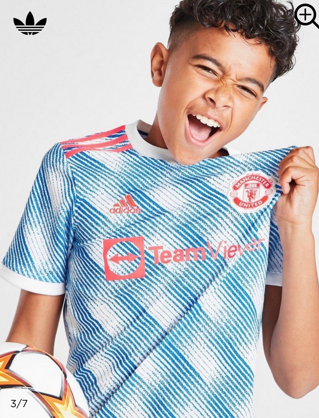 Asi raz obleceny. PC: 80€ Tento dres je známy svojím retro dizajnom inšpirovaným ikonickým „vločkovým“ vzorom zo začiatku 90. rokov (konkrétne sezóny 1991 – 1993). Vyznačuje sa modro-bielym grafickým vzorom s červenými detailmi, vrátane loga sponzora TeamViewer a troch pruhov Adidas. Manchester United