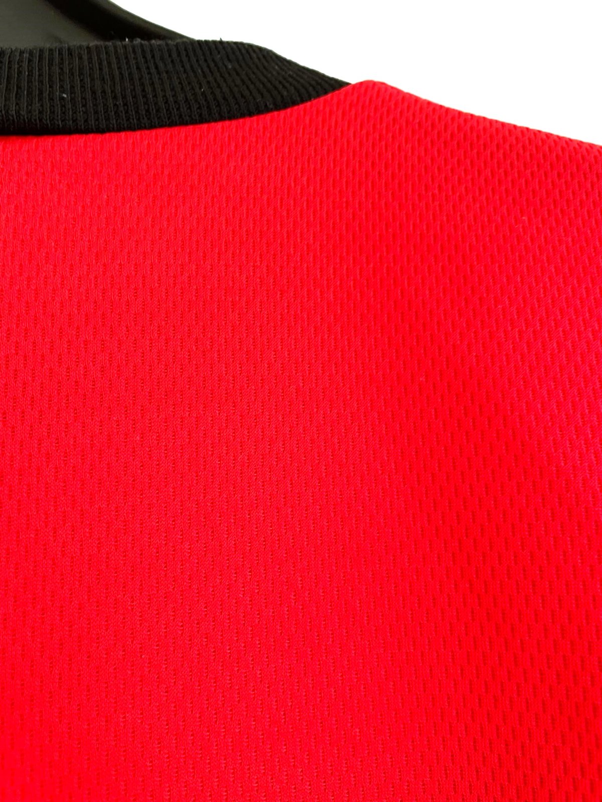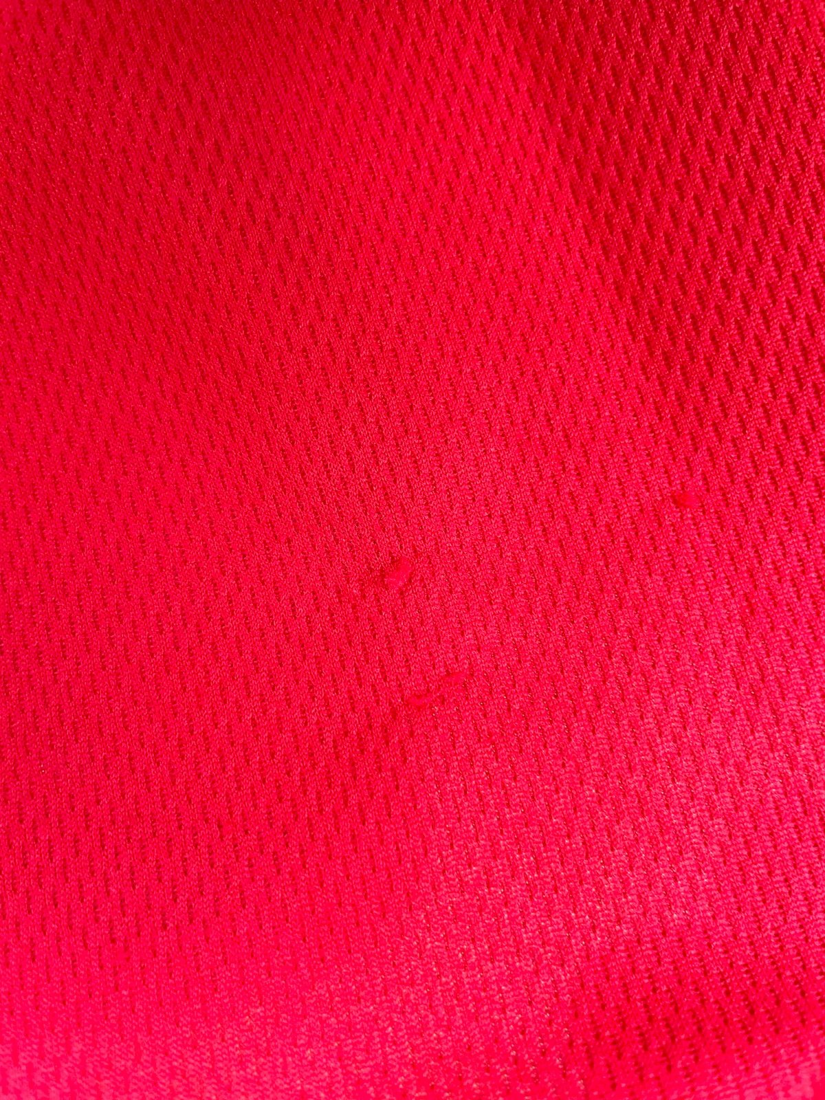 kvalitný hrubší dres,sýto červená farba,vzadu na spodku veľmi jemné zatiahnutie - vyfotené,dá sa pretiahnuť tenkým háčikom - ale nie je to vôbec vidno pri nosení,veľkosť vyfotená, šírka = 55 x 2 cm, dlžka= 72 cm