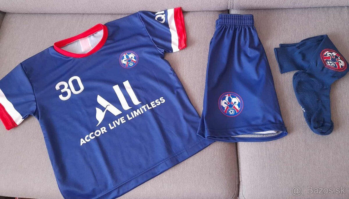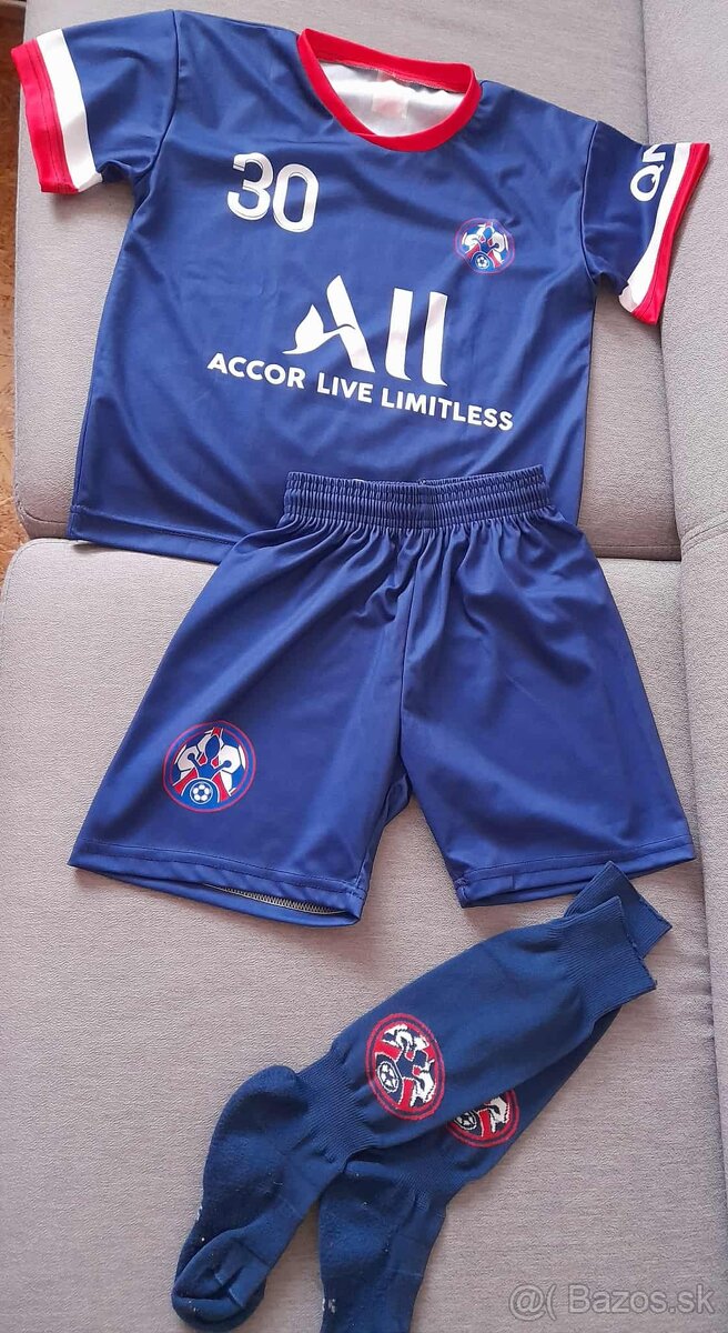 Ponúkam na predaj futbalový dres Messi raz použitý v top stave (veľ.128). Štucne sú grátis k dresu.