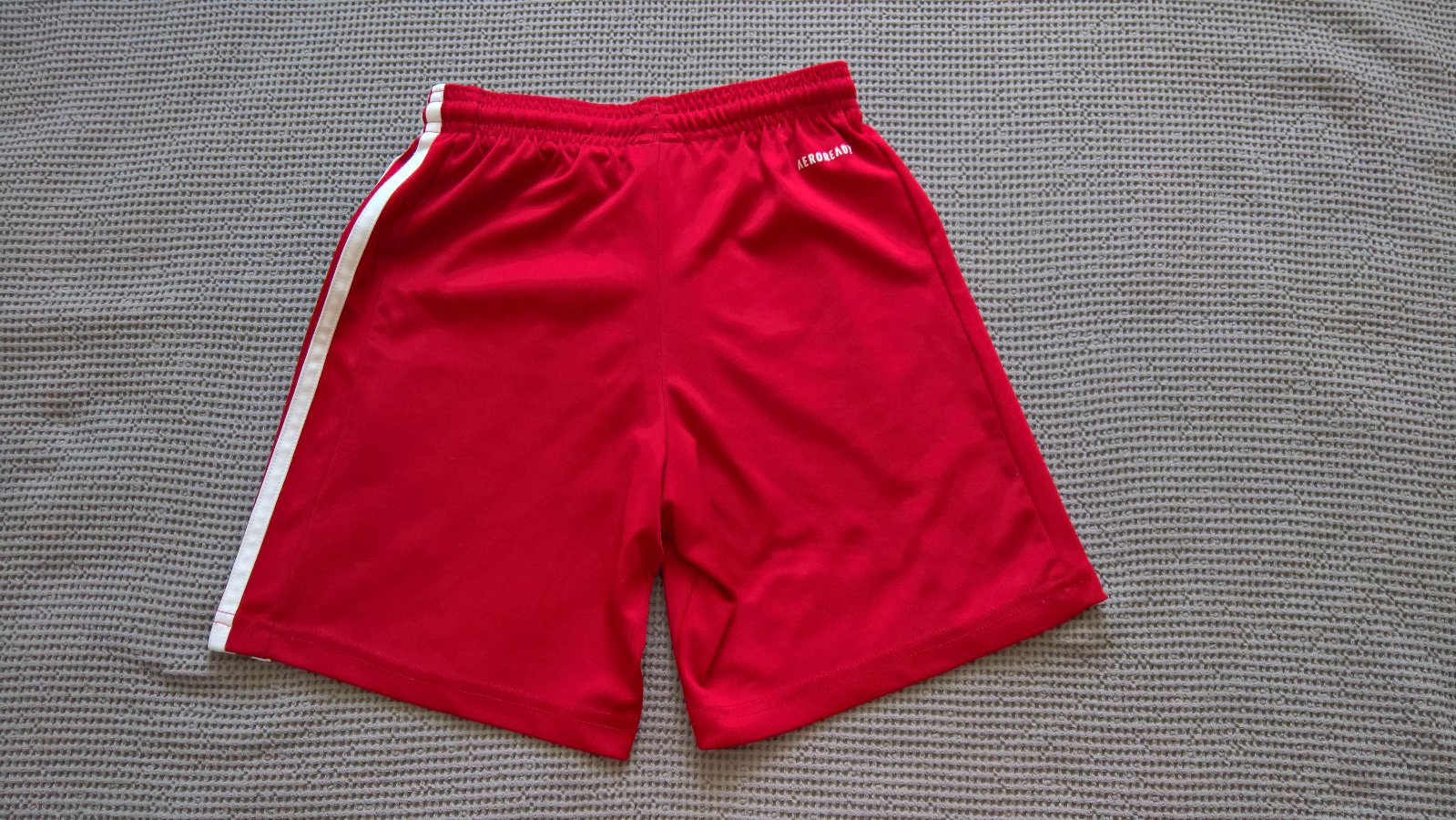 Funkčné šortky, materiál Aeroready, majú pár zatiahnutí, pri tomto materiále je to bežné, tie biele pásiky, sú miestami zájdené, nie veľmi, ale upozorňujem na všetky známky používania.