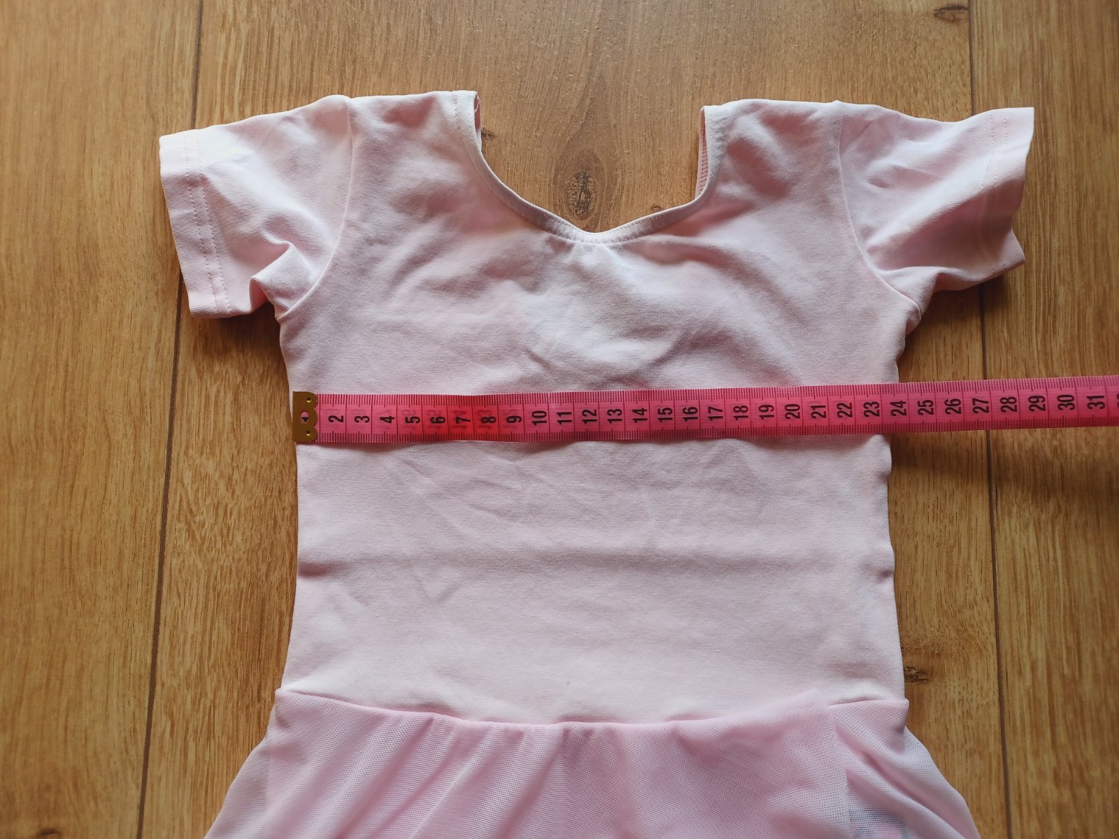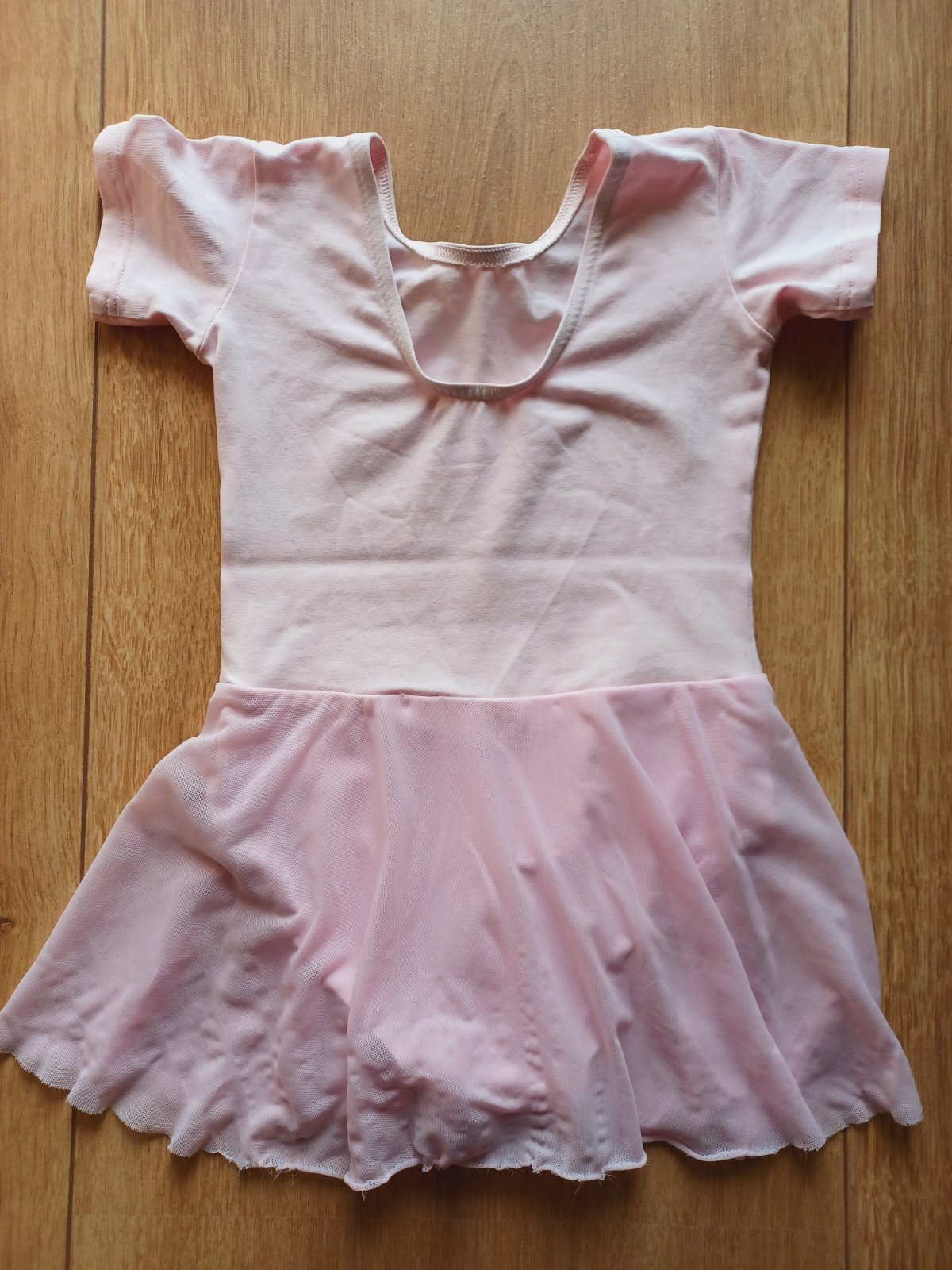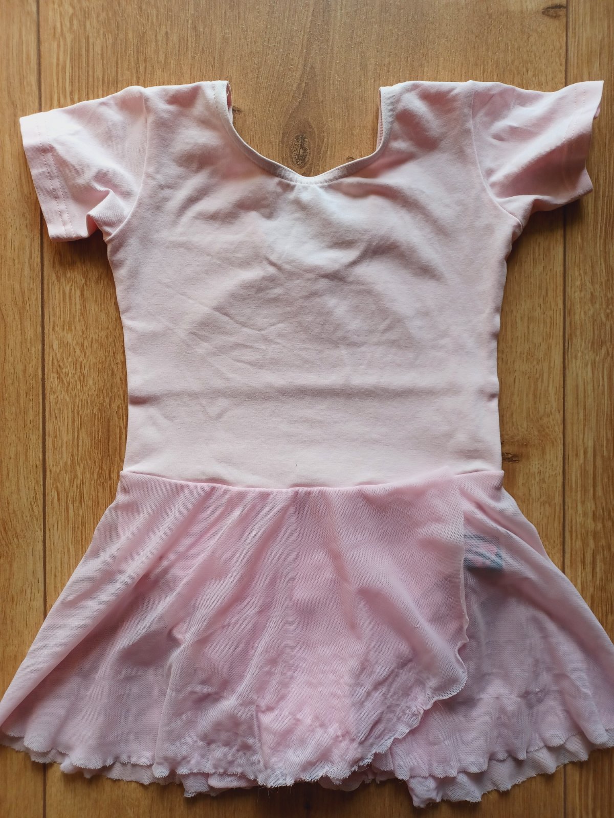 Bavlnený baletný dres veľmi dobrej kvality, suknička je už pozaťahovaná, cena prispôsobená. Dcérka ho nosila ako 98 a 104.