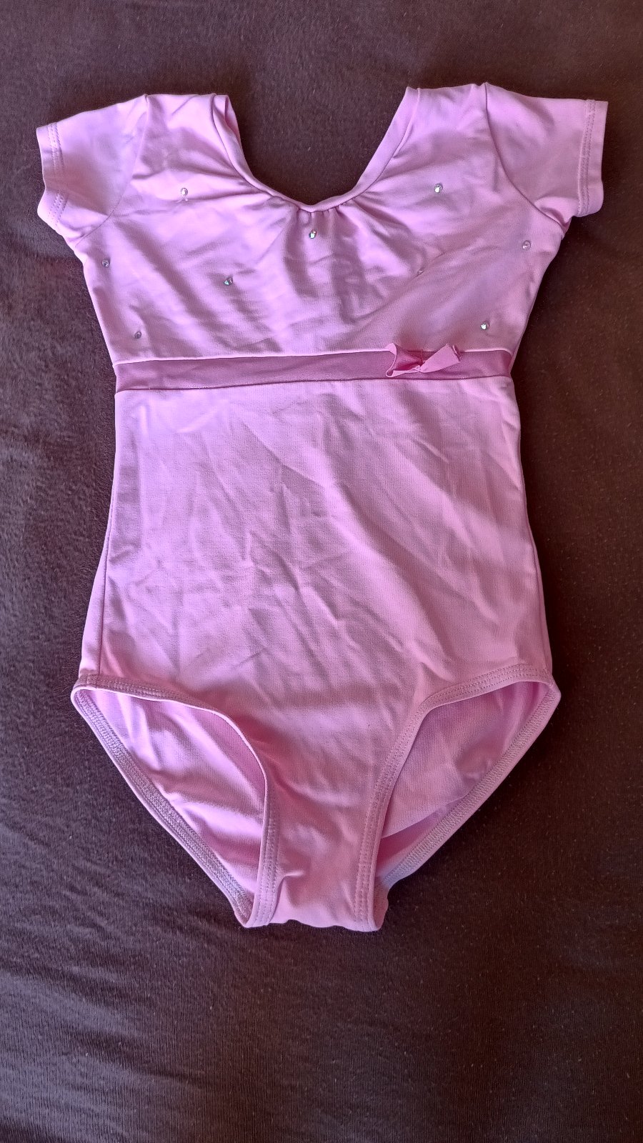 Krásny výrazne ružový baletný dres s trblietavými aplikáciami. Dcéra ho nosila vo veku 4-6 rokov. Mám k nemu aj pančuchy a cvičky.