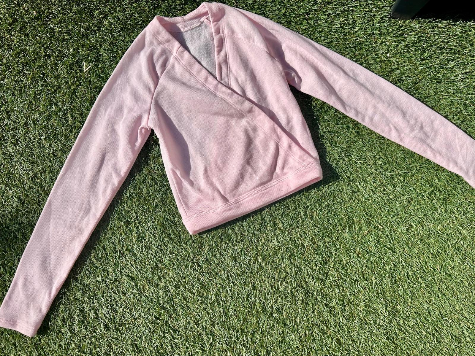 Kupované v Decathlon. Baletný trikot so sukničkou, zavinovací svetrík a návleky na nohy. Veľkosť na 10 rokov. Trikot dĺžka 56cm, pazuchy 29,5cm. Svetrík dĺžka 38,5cm, rukáv od krku 60cm, pazuchy 31cm. Cena za všetko spolu je 15€
