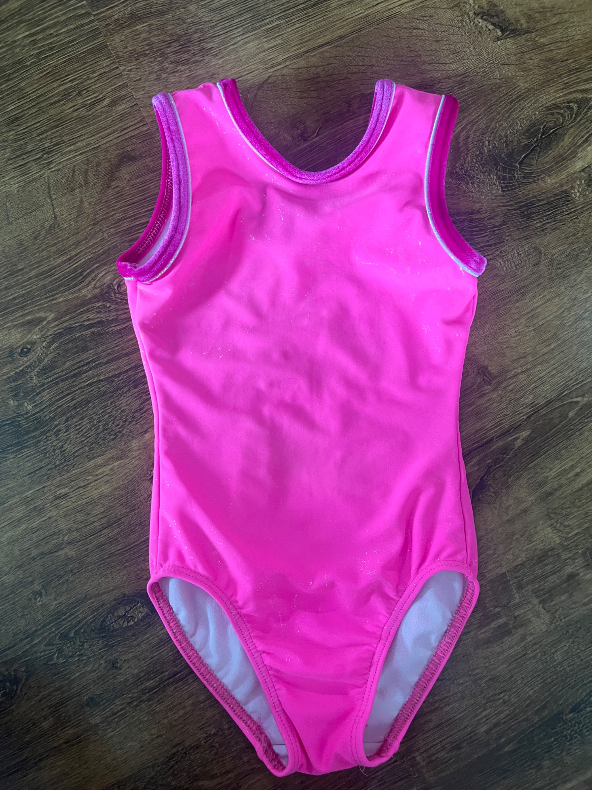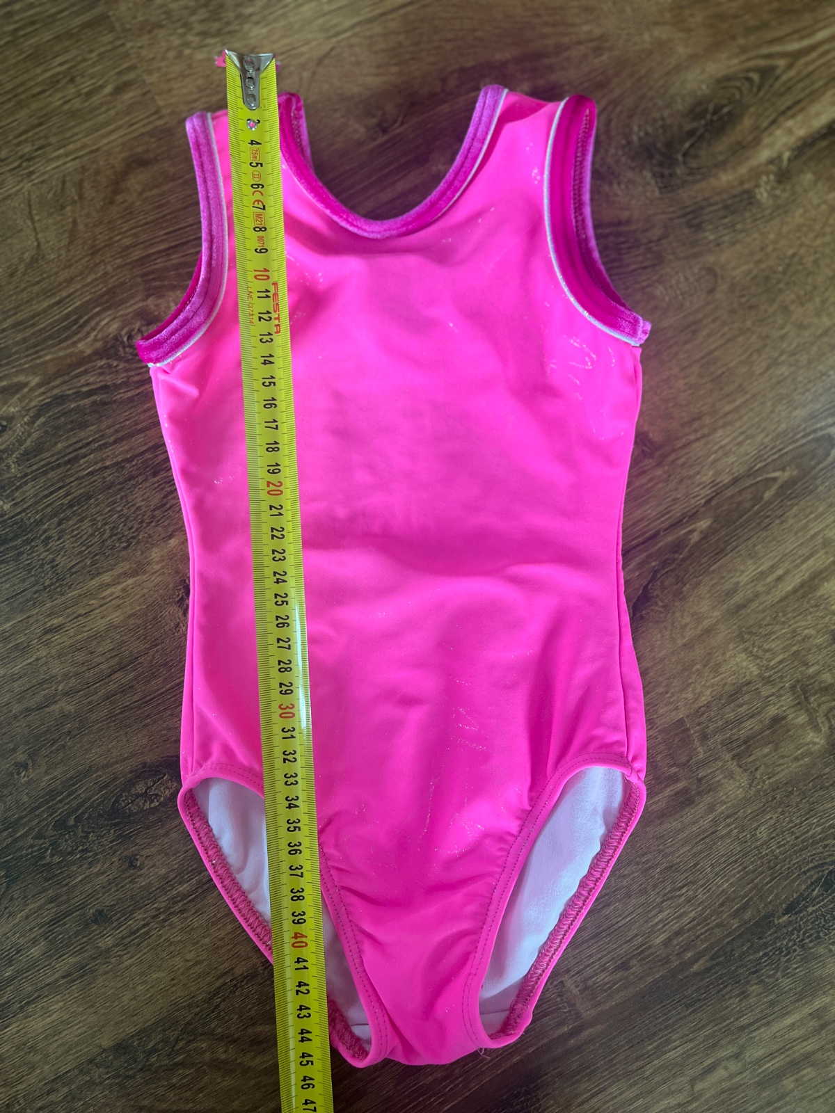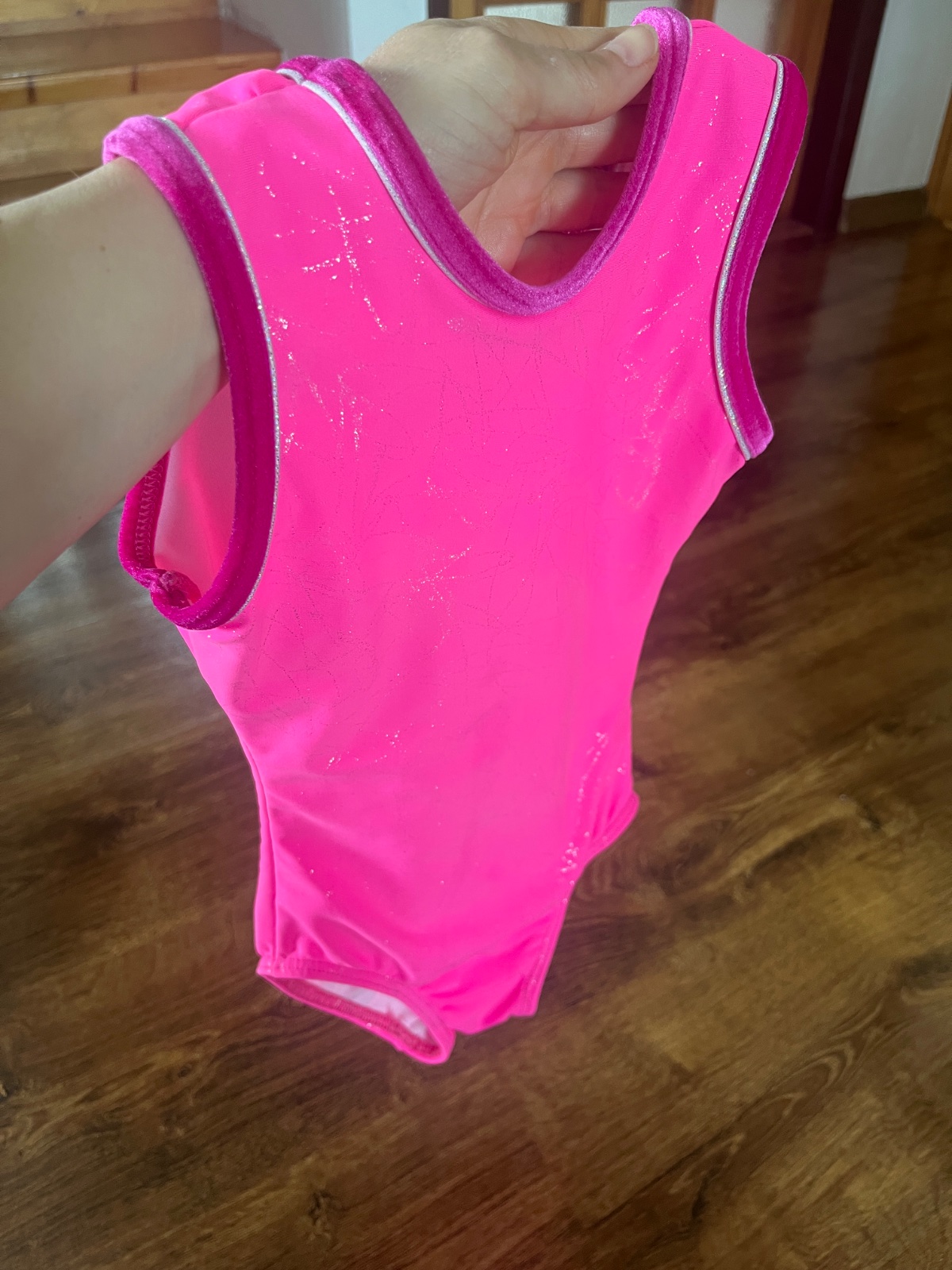 Krásny výrazne ružový baletný dres s trblietavými aplikáciami. Dcéra ho nosila vo veku 4-6 rokov. Mám k nemu aj pančuchy a cvičky.