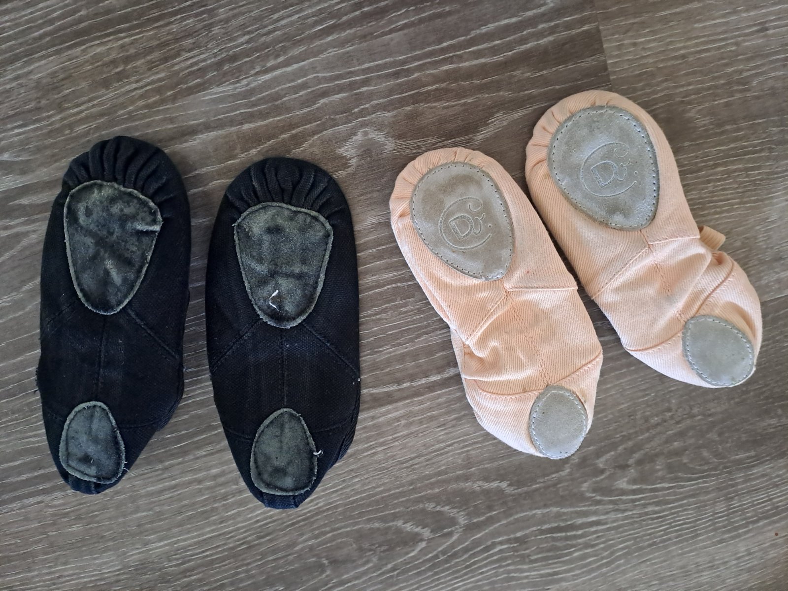 1x body bez rukávov 2x body Dlhý rukáv (jedno bavlnené) 2x suknička (čierna šitá) 1x súprava a trblietkami 1x cvičky 2x špičky Cena za komplet Veľkostne sedí na cca 116-122 Premetiam len pri v...