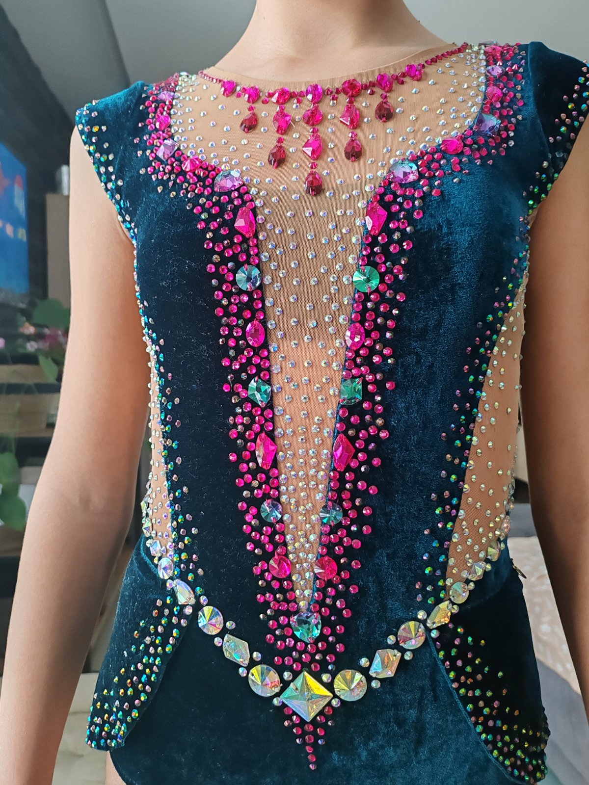 Predám súťažný dres na modernú gymnastiku. Šitý na Ukrajine. Použitý na troch súťažiach. Bez poškodení.