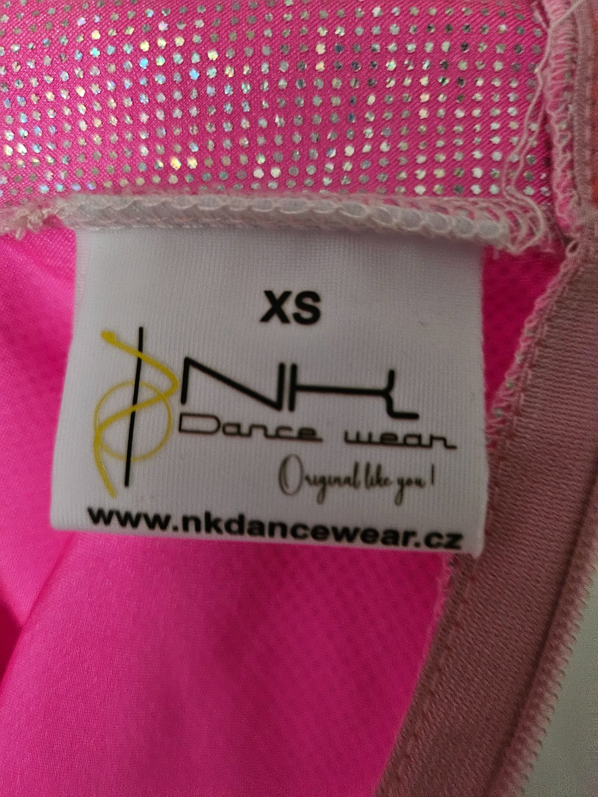 Krásny výrazne ružový baletný dres s trblietavými aplikáciami. Dcéra ho nosila vo veku 4-6 rokov. Mám k nemu aj pančuchy a cvičky.
