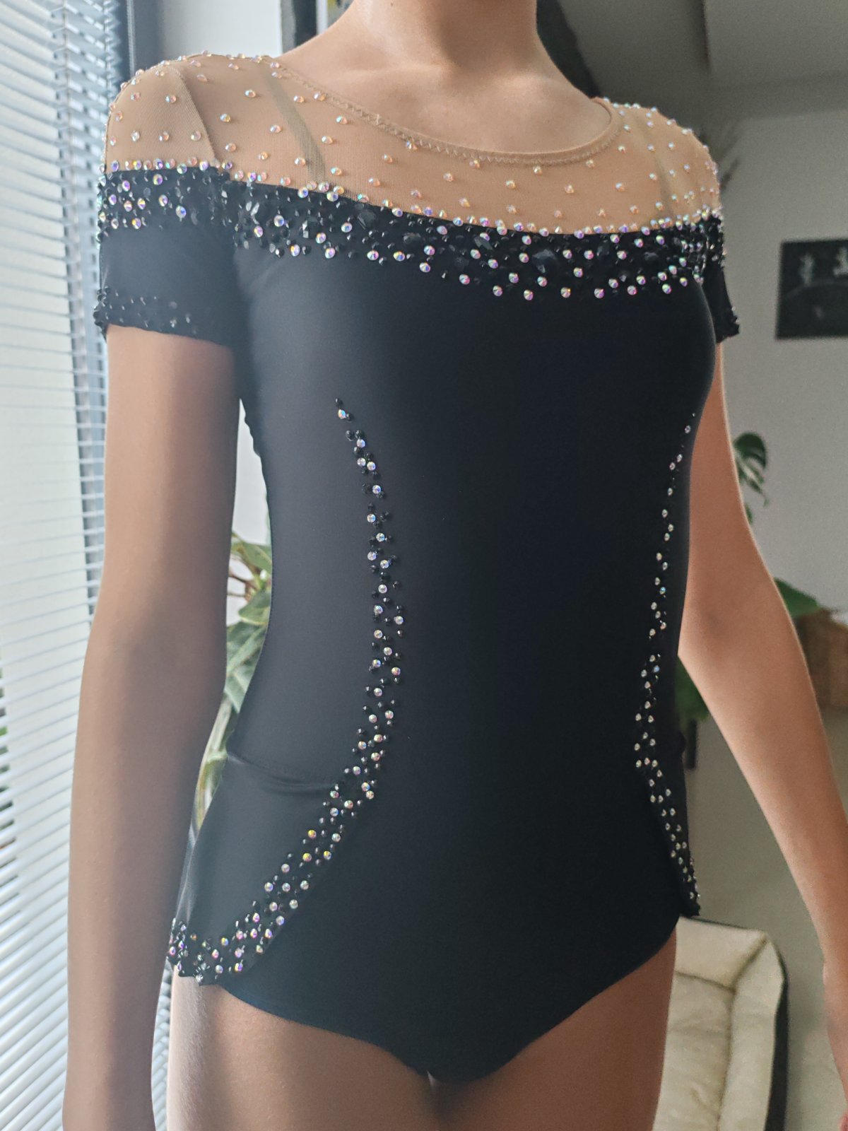 Predám súťažný dres na modernú gymnastiku. Oblečený 3 krát. Bez poškodení. Rozmery na foto. Veľkostne tak od 134-146 podľa postavy. Miery na fotke.