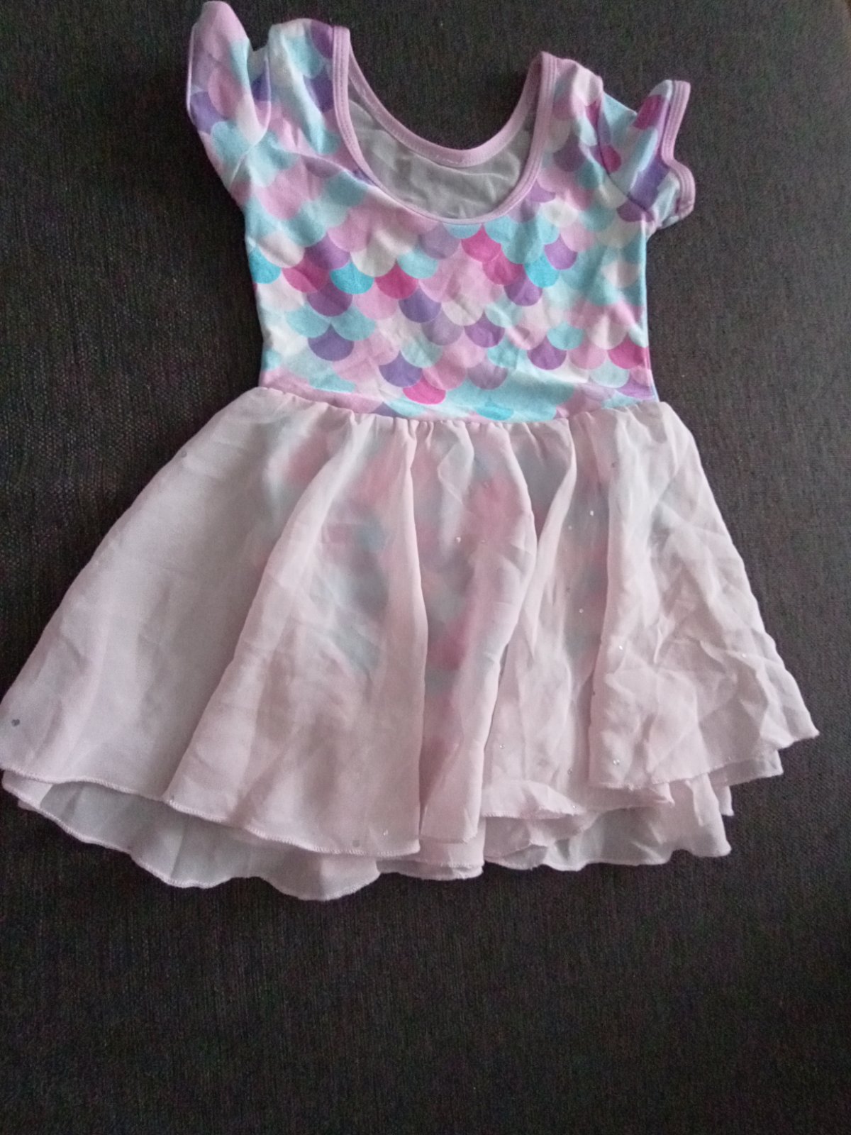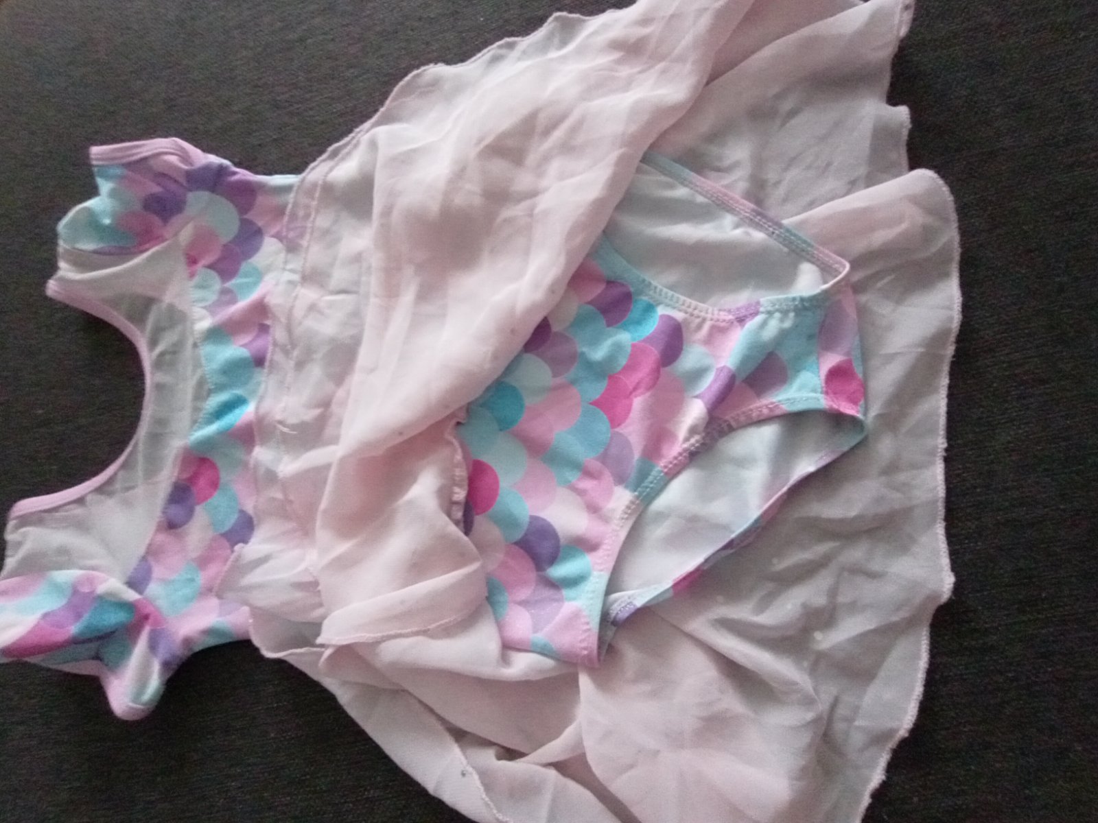 Predám používaný baletny dres. Sukňa spojená s bodami. Na sieťované vpredu dve malinké dierky,nie je veľmi vidieť.