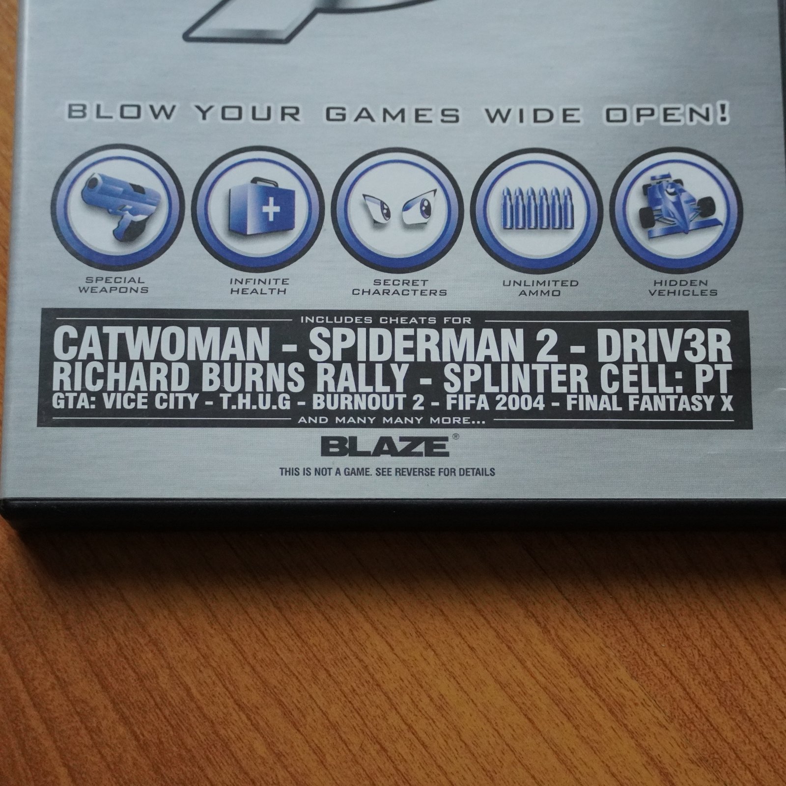 Obsahuje cheaty pre hry Catwoman, Spiderman 2, Driv3r, Richard burns rally, Splinter cell: PT, GTA: Vice city - T.H.U.G, Burnout 2, Fifa 2004, Final Fantasy X.