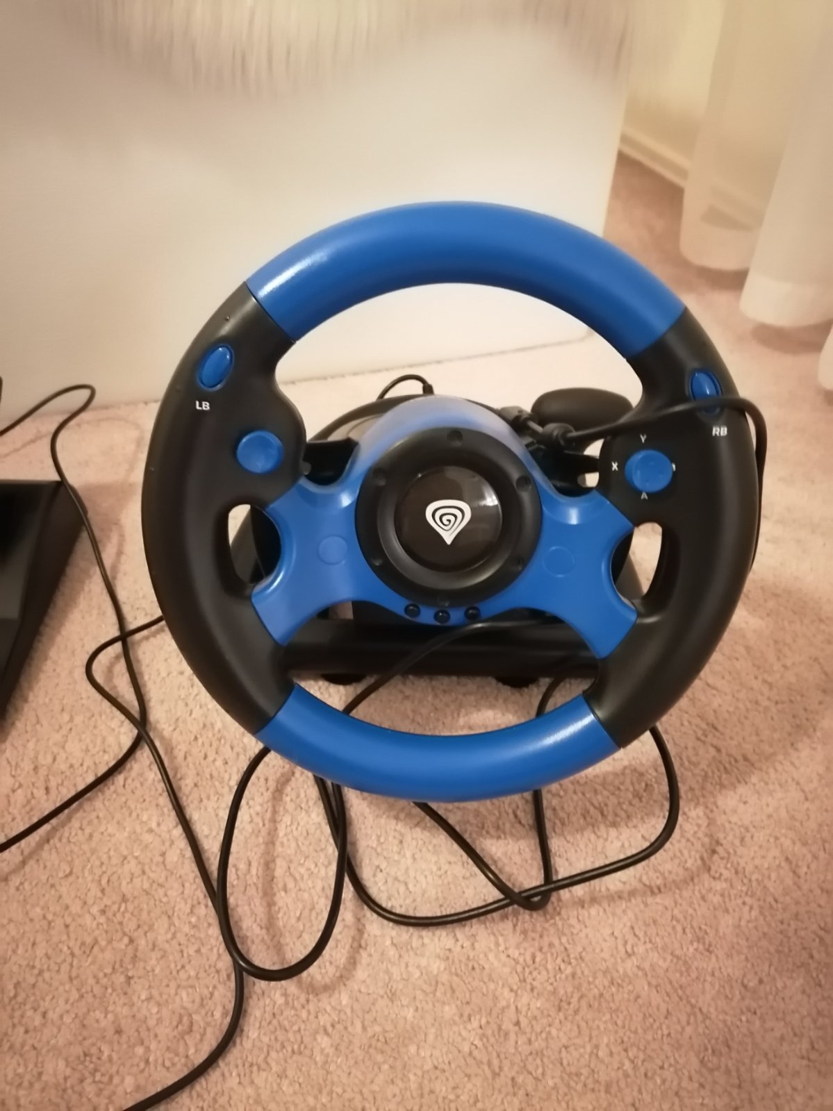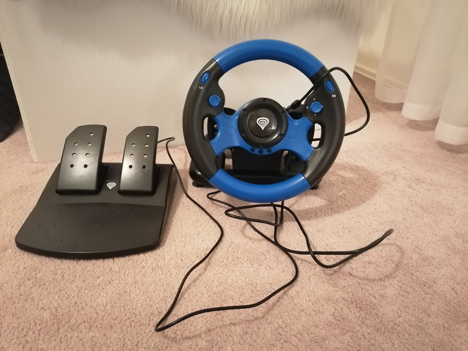 Volant s pedálmi, uhol otáčania 180°, 2 pedále, D-Pad, možno pripojiť na PC, PS a Xbox one, USB pripojenie, minimálne používaný, cena 55e