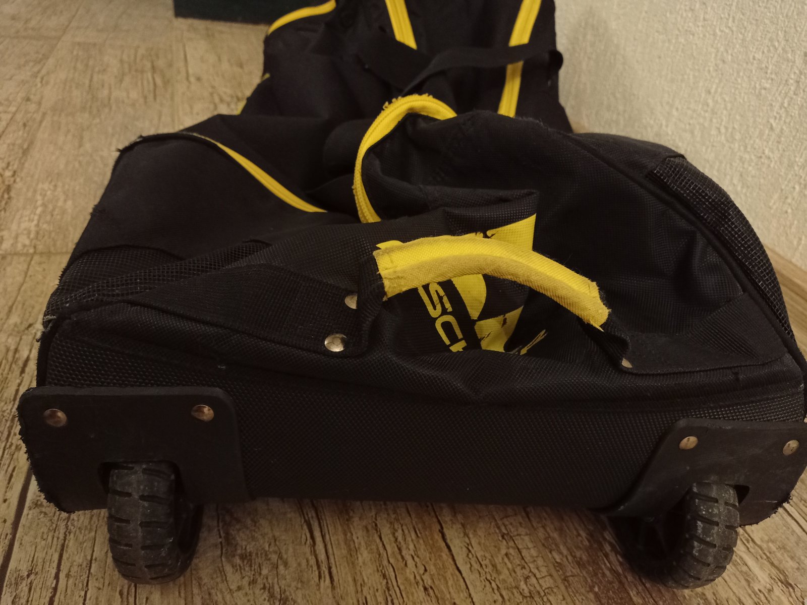Predám hokejovú tašku . Zipsy a kolieska funkčné. Ručka sa vyťahuje nosí sa dobre. Stav pofotený, určite ešte posluži.Taška Junior.