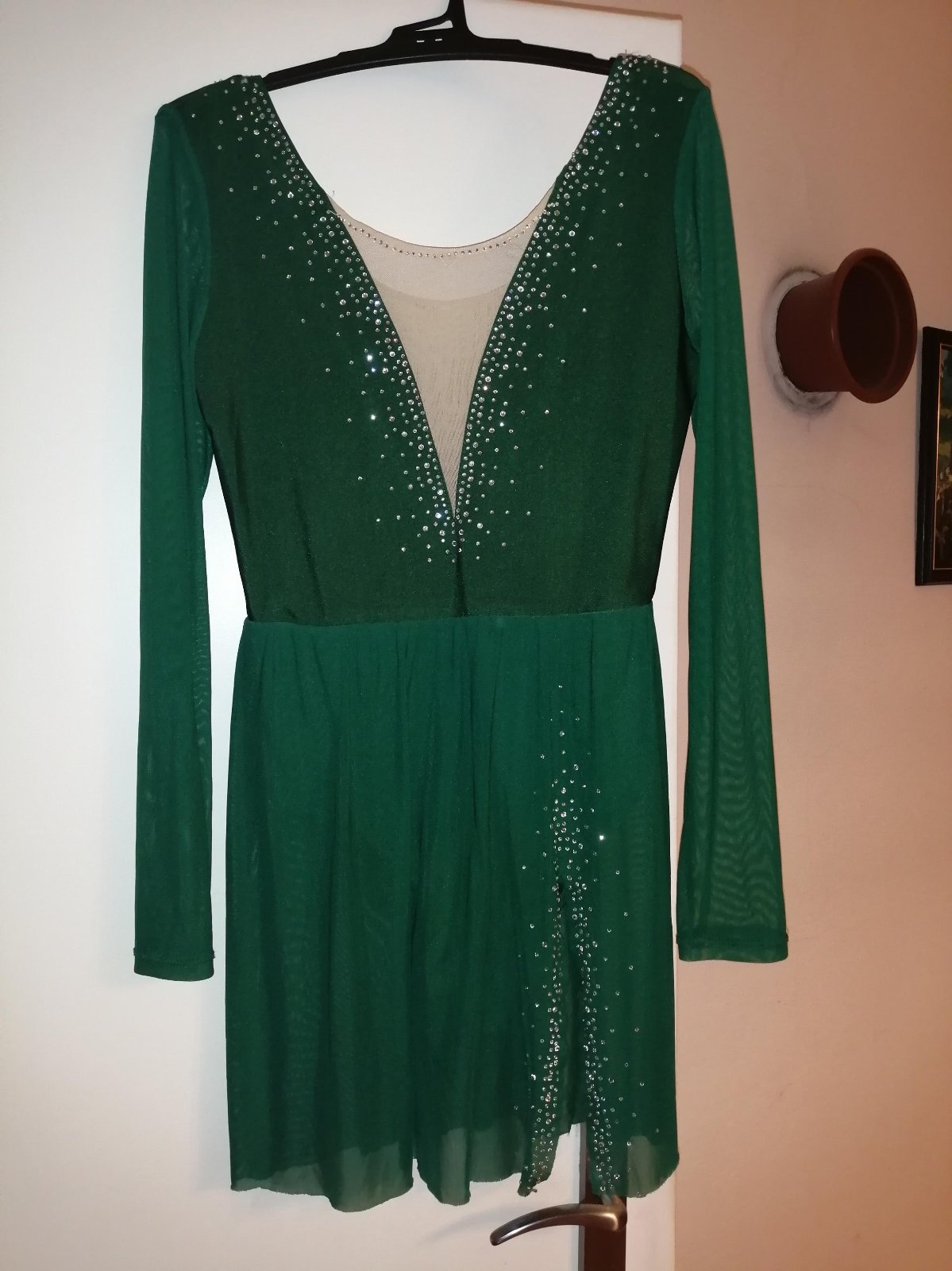 Predám súťažné šaty na kraso, krásna zelená farba, nosené na súťažiach iba jednu sezónu, čo bolo 7 súťaží. Na veľkosť 156-164cm. Jemná elastická látka, na sukničke rozparok. Cena 20 € aj s poštovným. Dohoda možná.