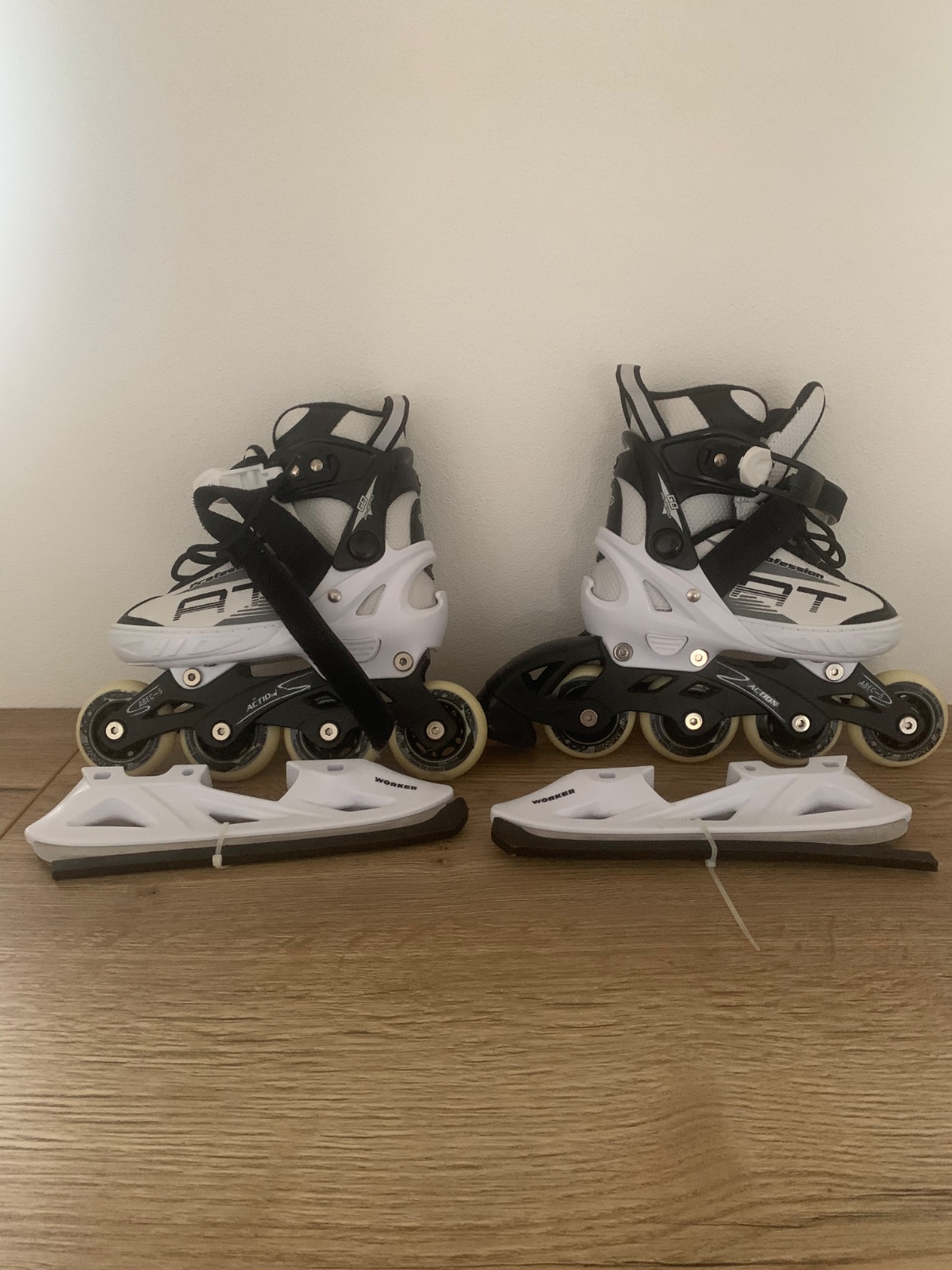 Ponúkam korcule značky Worker veľkosť 29-32 su iba vyskúšané nestihli sme vynosiť.Su 2 v 1 aj na ľad aj kolieskové spodná časť sa da menit.