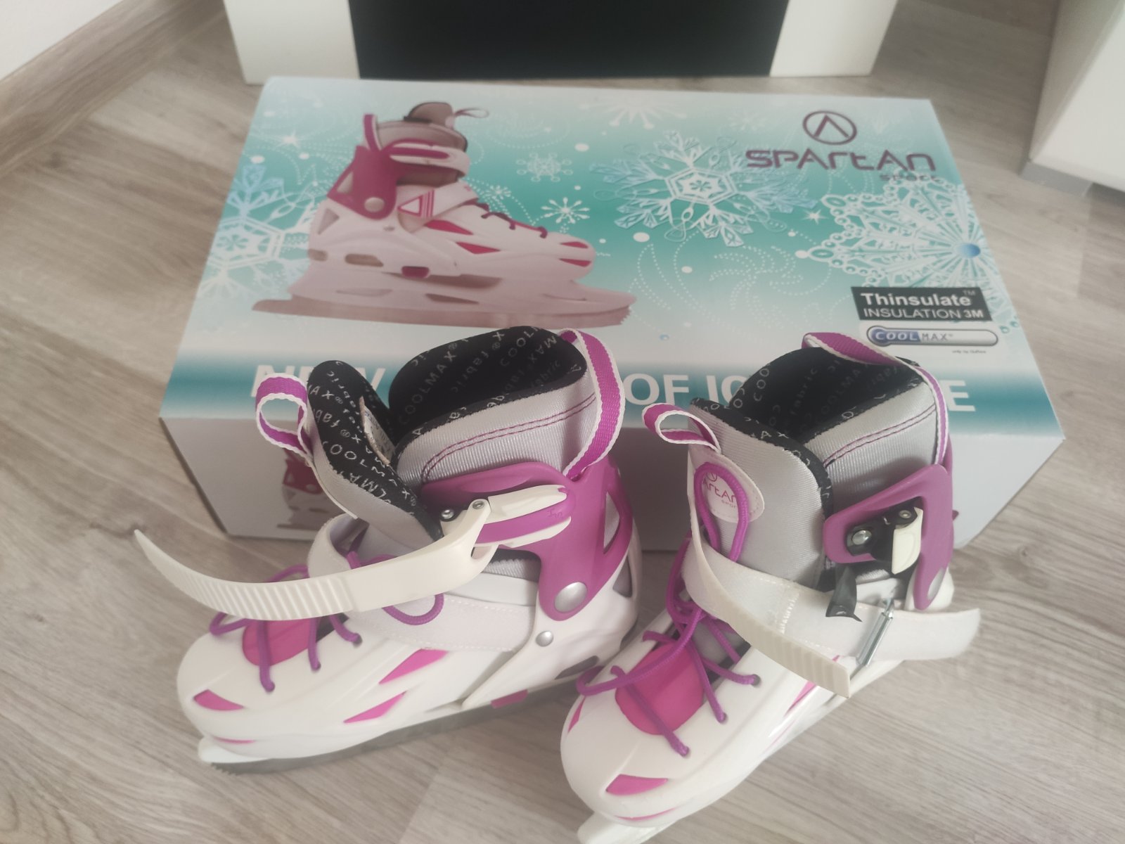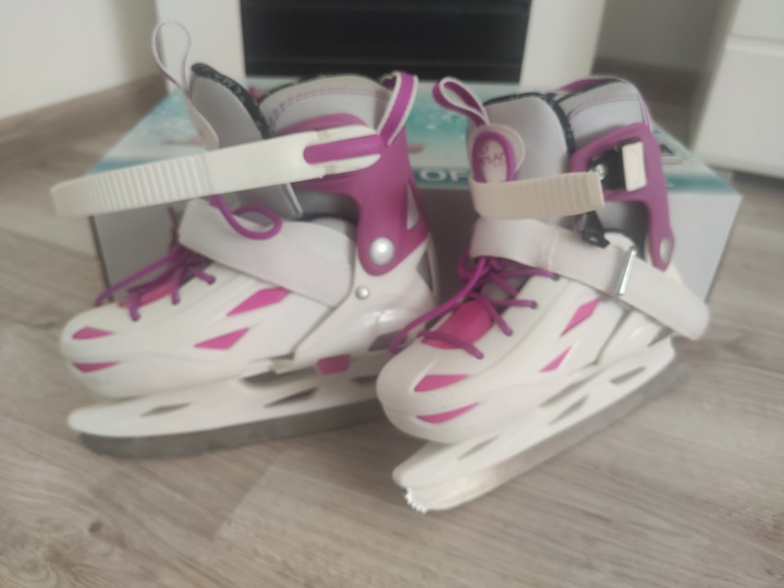 NASTAVITEĽNÉ DETSKÉ KORČULE Nové Športová pomôcka určená pre ľahšiu výučbu korčuľovania. Možno pripevniť na akúkoľvek topánku. Fixácia pomocou koženého a plastového pásika. Nastaviteľná veľkosť 1...