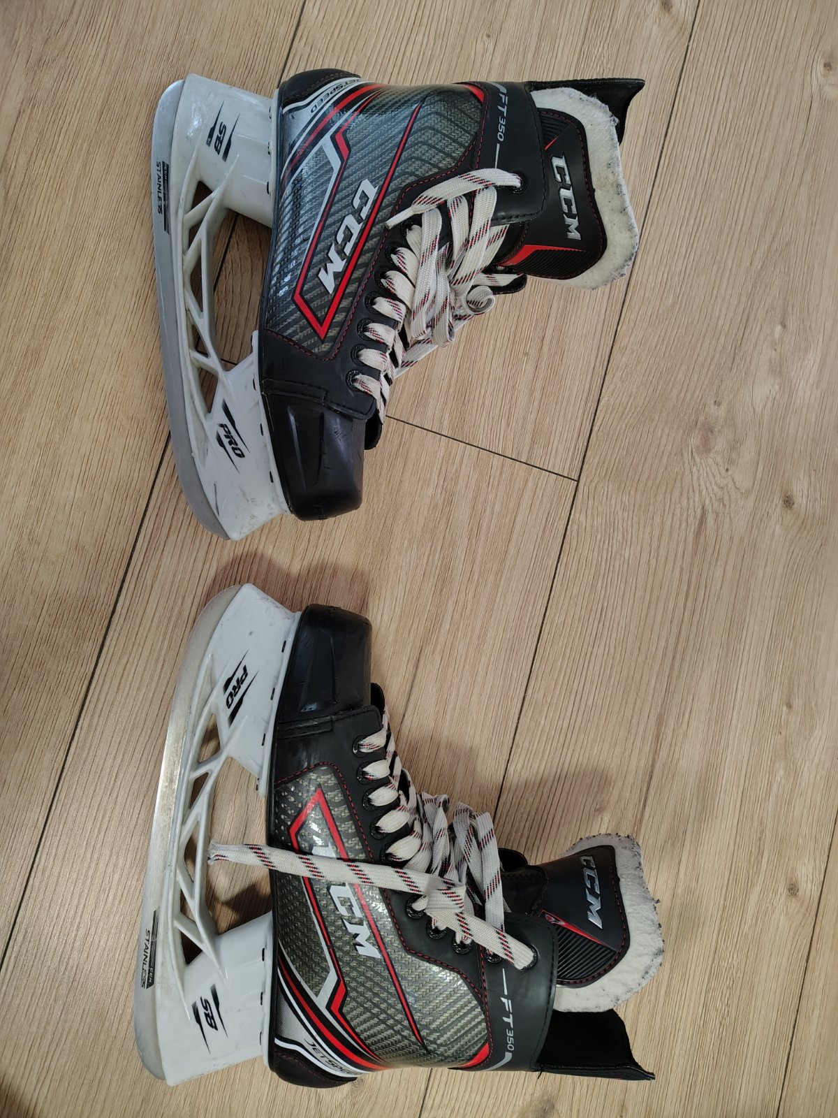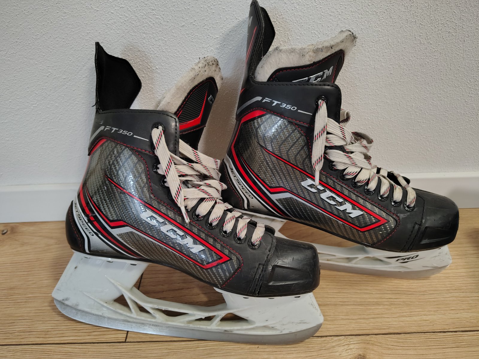 nosené korčule značky Botas,jediná vada je že vpredu sú špičky z pevnej látky = kepper a sú zošúchané,ale inak nič im nechýba,namontované nové nože na pôvodné topánky.... vložka meraná celková dlžk...