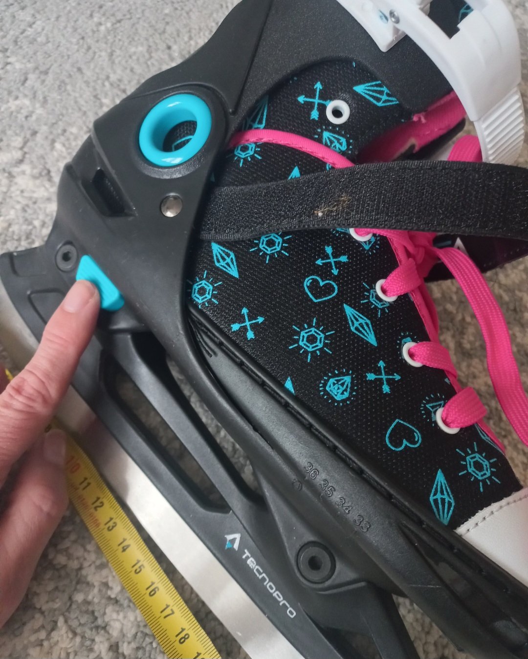 Nastaviteľné od veľ.33 do veľ.36 Dĺžka chodidla 21.4cm do 23,4cm