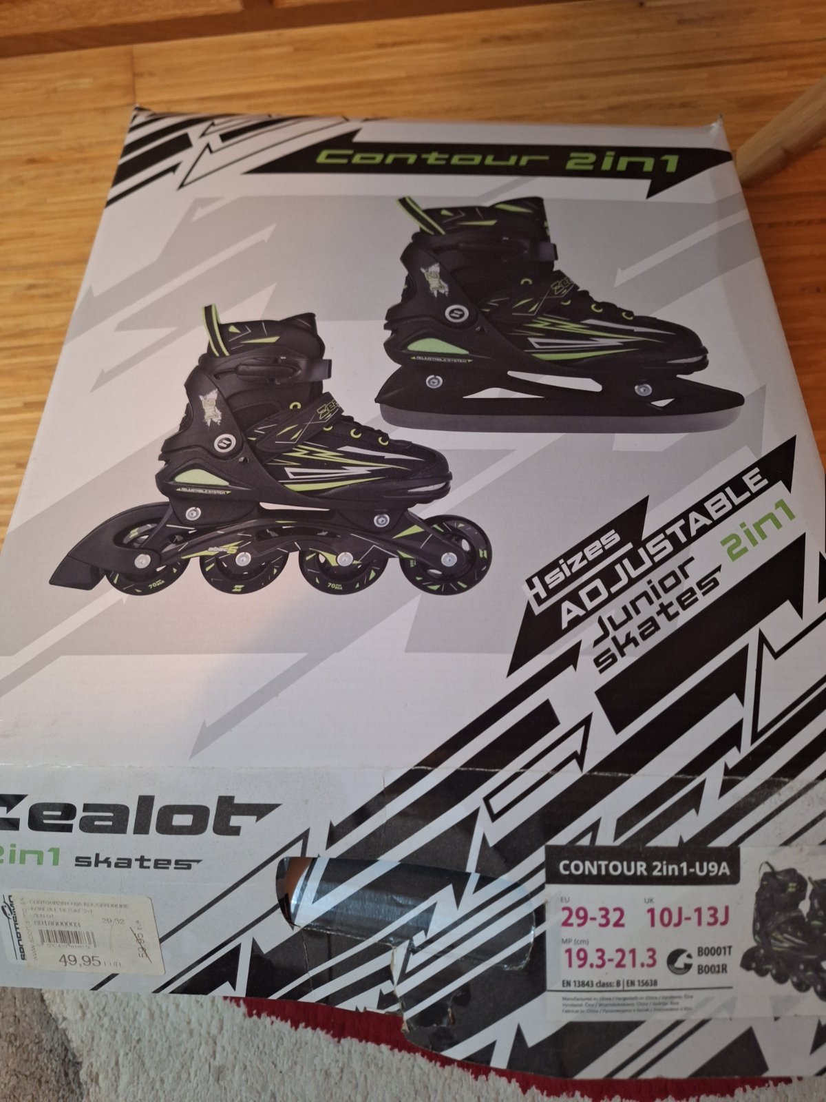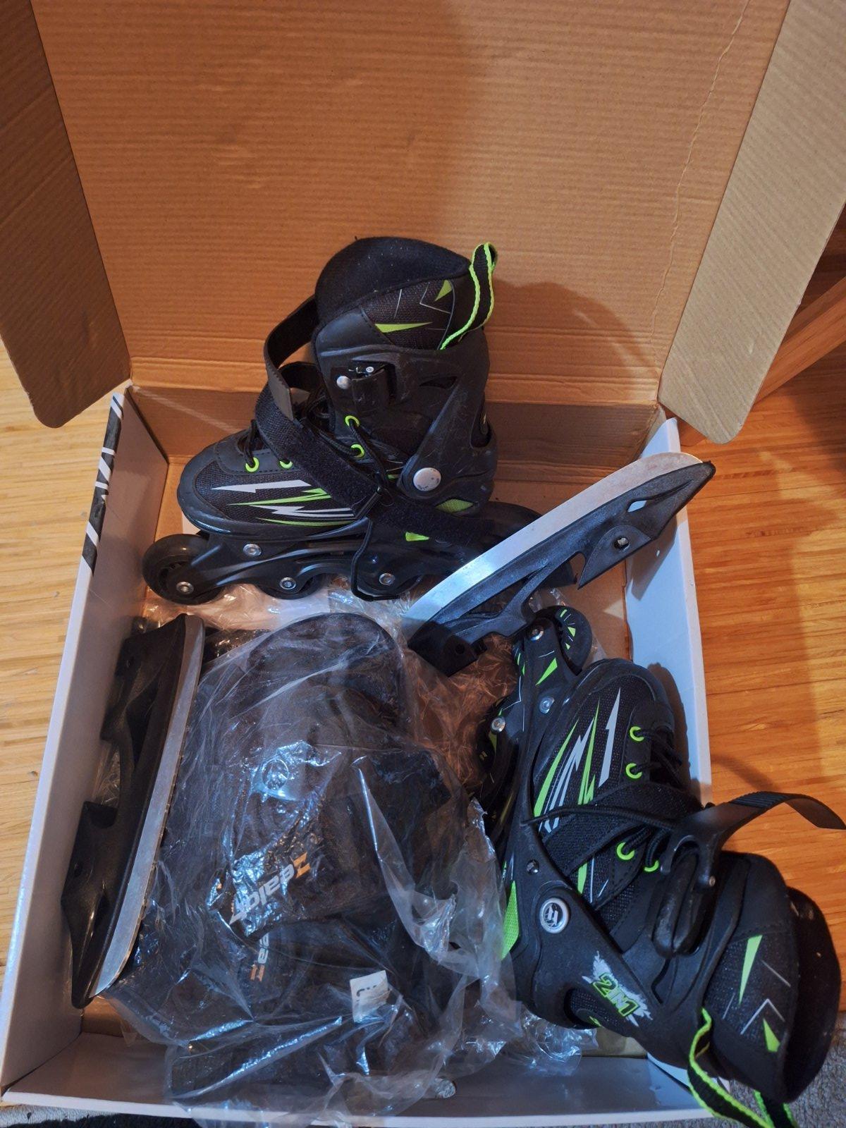 Zn. Oxelo, adaptívne ľadové korčule veľkost 30 až 32. Nanovo nabrusené v 12 2025, potom sme zistili, ze su malé, takže sme kúpili väčšie.