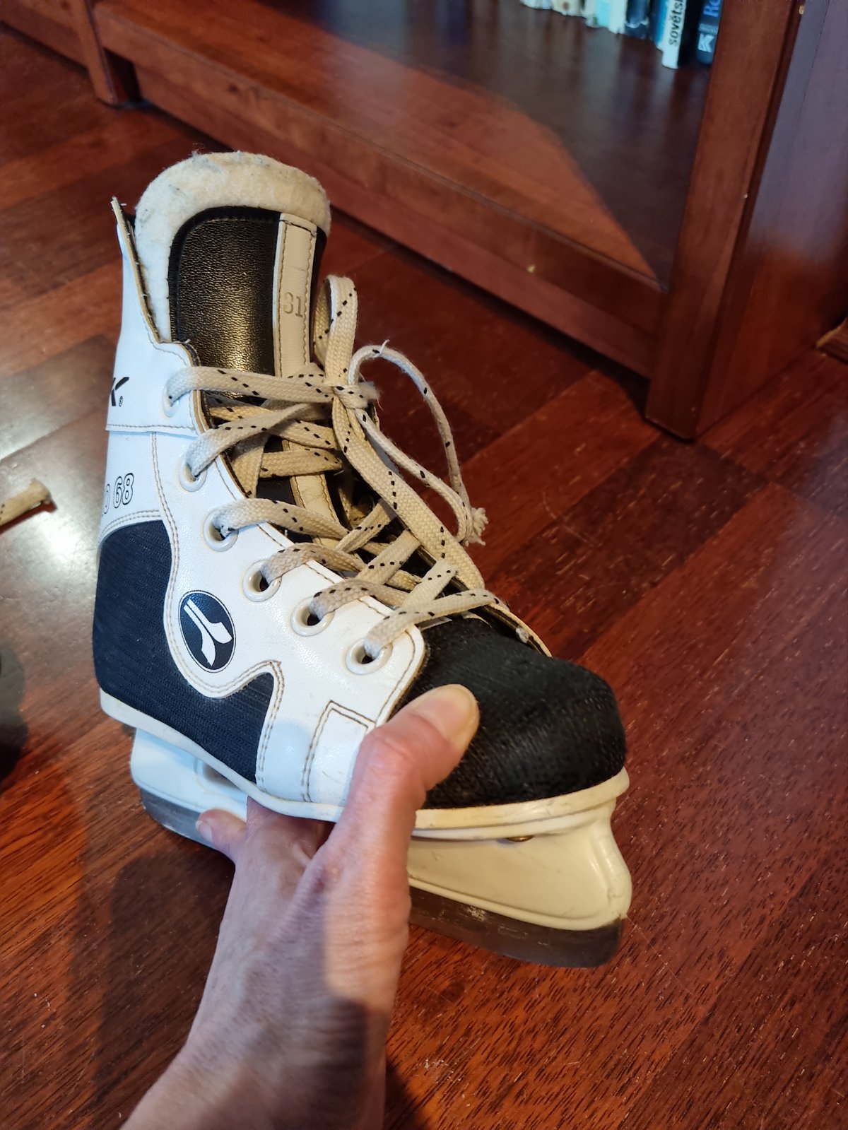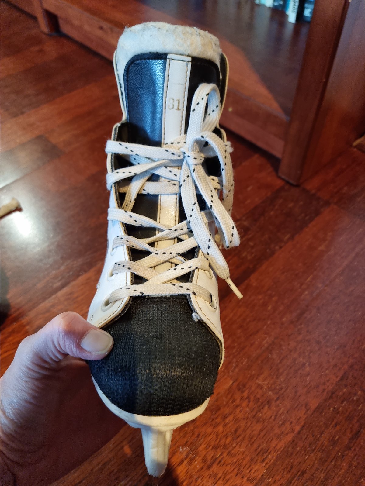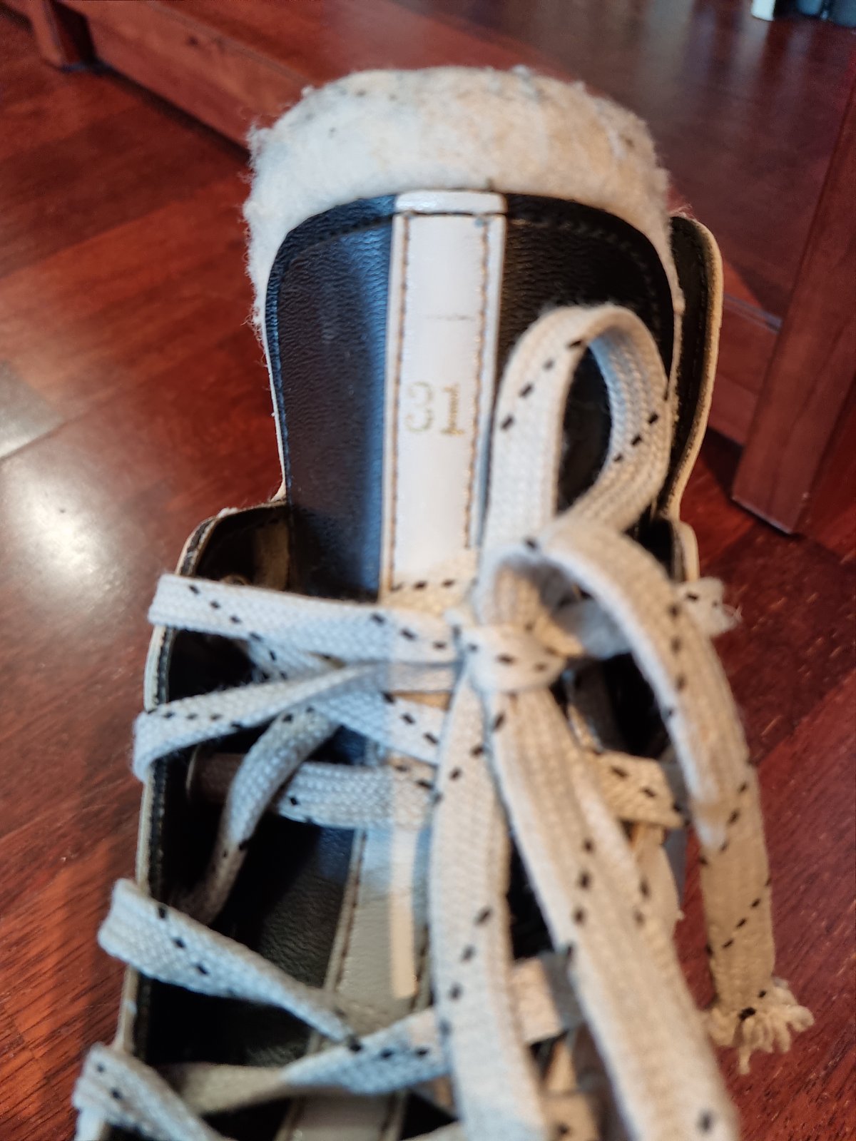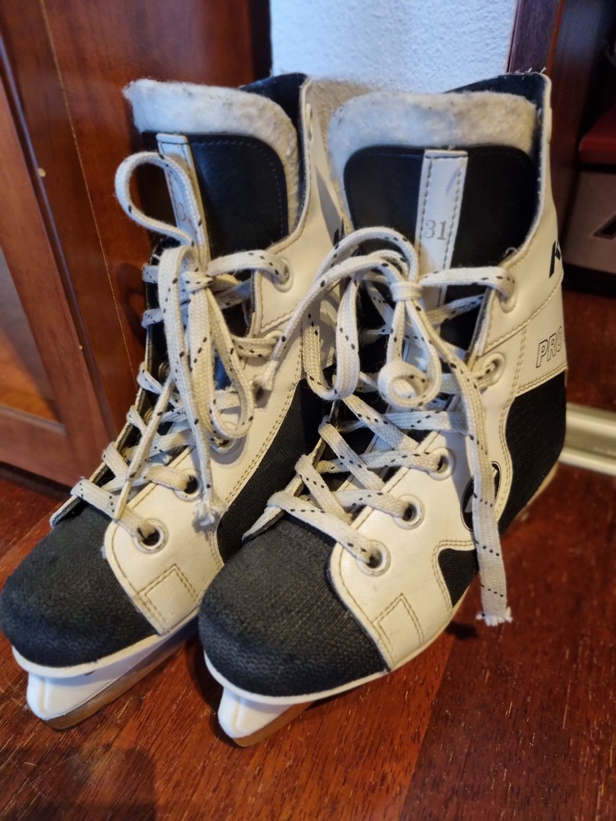 Detské korčule na ľad, veľkosť 31, našla som ich po 2 rokoch v skrini, takže bude treba nabrúsiť.