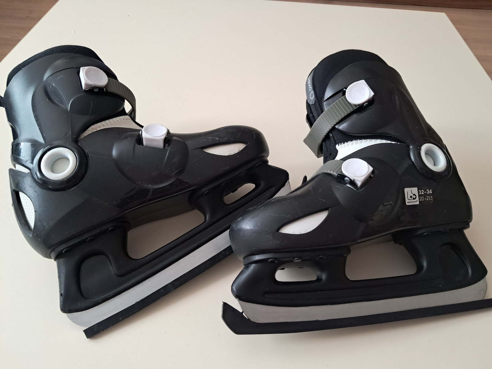 Korčule na ľad vhodné pre začiatočníka. Maju bežné oderky. Nafotene co najdokladnejsie. Poslúži viacero sezon velkost 32-34.