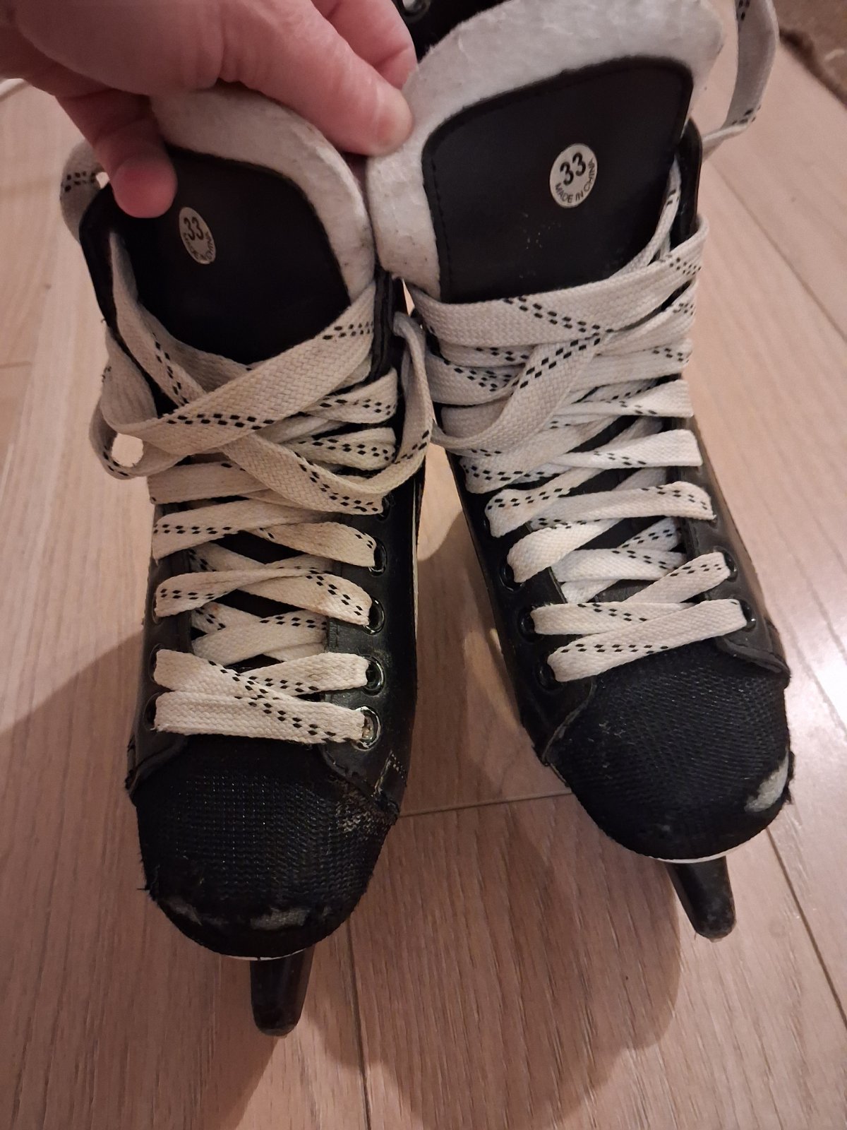 Predám používané chlapčenské ľadové korčule Botas, veľ. 33 (210 mm), v.d. 21 cm, farba: čierna. Korčule si už niečo odžili, čo poznať na sfarbení čepelí a šnúrok, na asi 2 uvoľnených kovových krúžk...