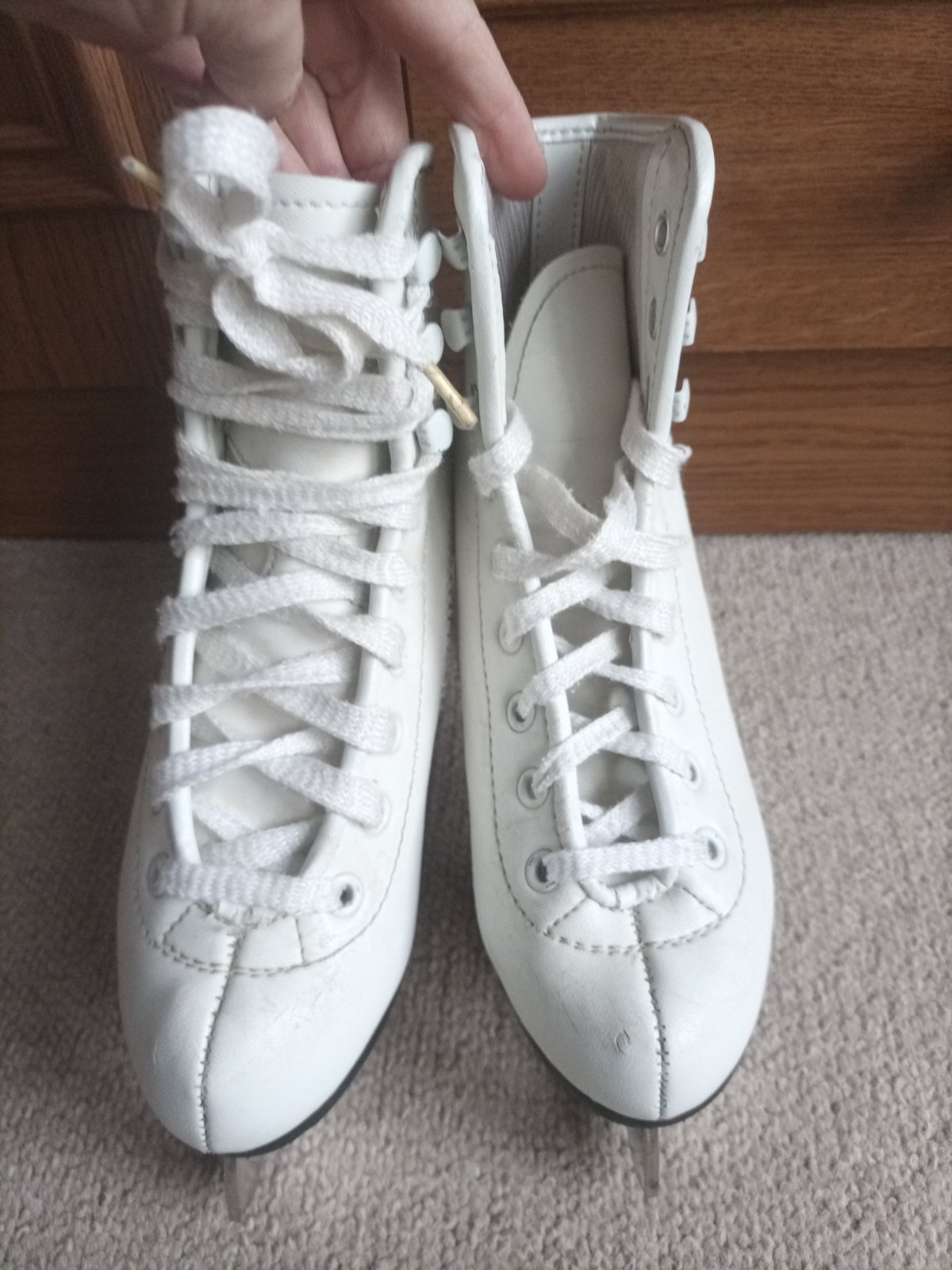 Dievčenské korčule v dobrom stave. Spodný zúbok mierne zbrúsený.