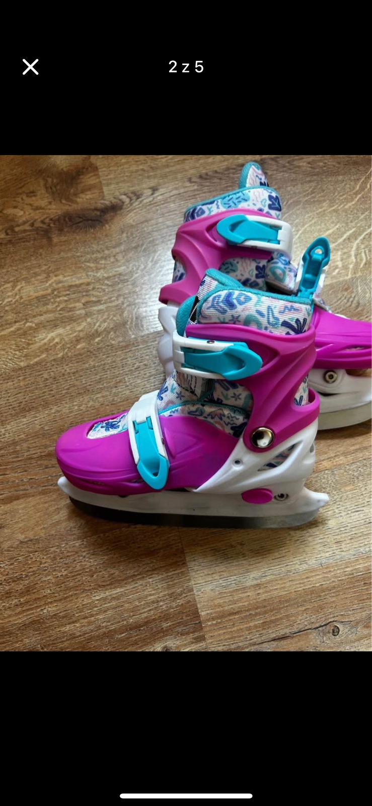 Nastaviteľné korčule veľkosť S od 31 po 34 s vymeniteľnými podvozkom na zimné alebo letné korčuľovanie. Zimné : nerezový nôž dievčenský model s krasokorčuliarskym nožom so zubkami. Letné : kolies...
