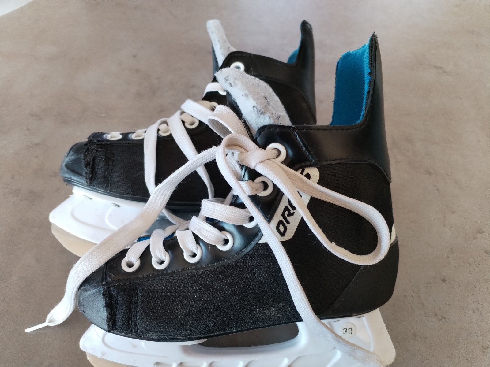 Hojejové korčule, vyššia rada, super stav, pár x použité. Veľkosť 33-34, vnútorná vložka odfotená.