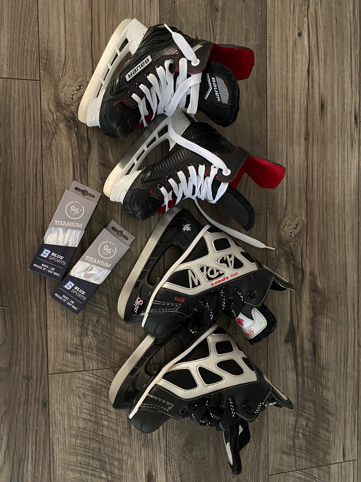 Ako darcek 2x snurky a korcule Aspen sport tiez parkrat pouzite, vnut. dlzka: 19cm (ideal pre surodencov) ;)