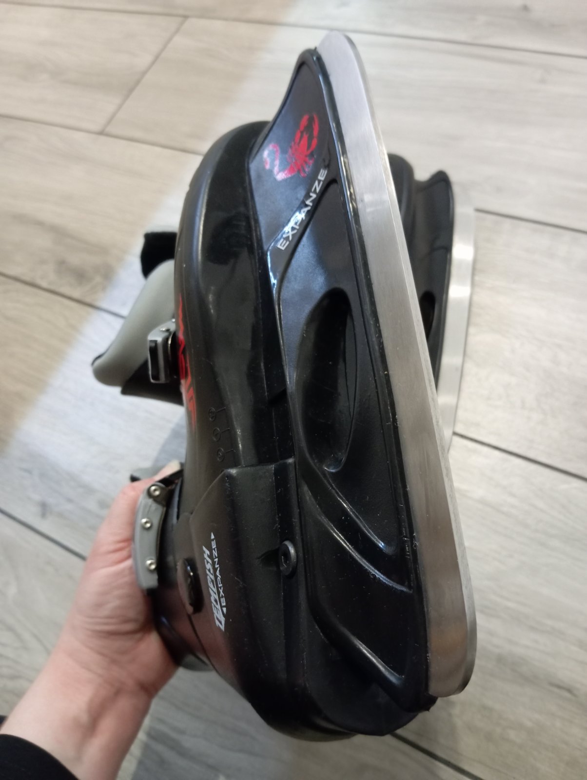 Korčule sú vo veľkosti 33 - 36. Dajú sa využiť na ľad, ale aj ako kolieskové. Len malé známky používania (drobné škrabance - Pozri foto), inak bez závad.