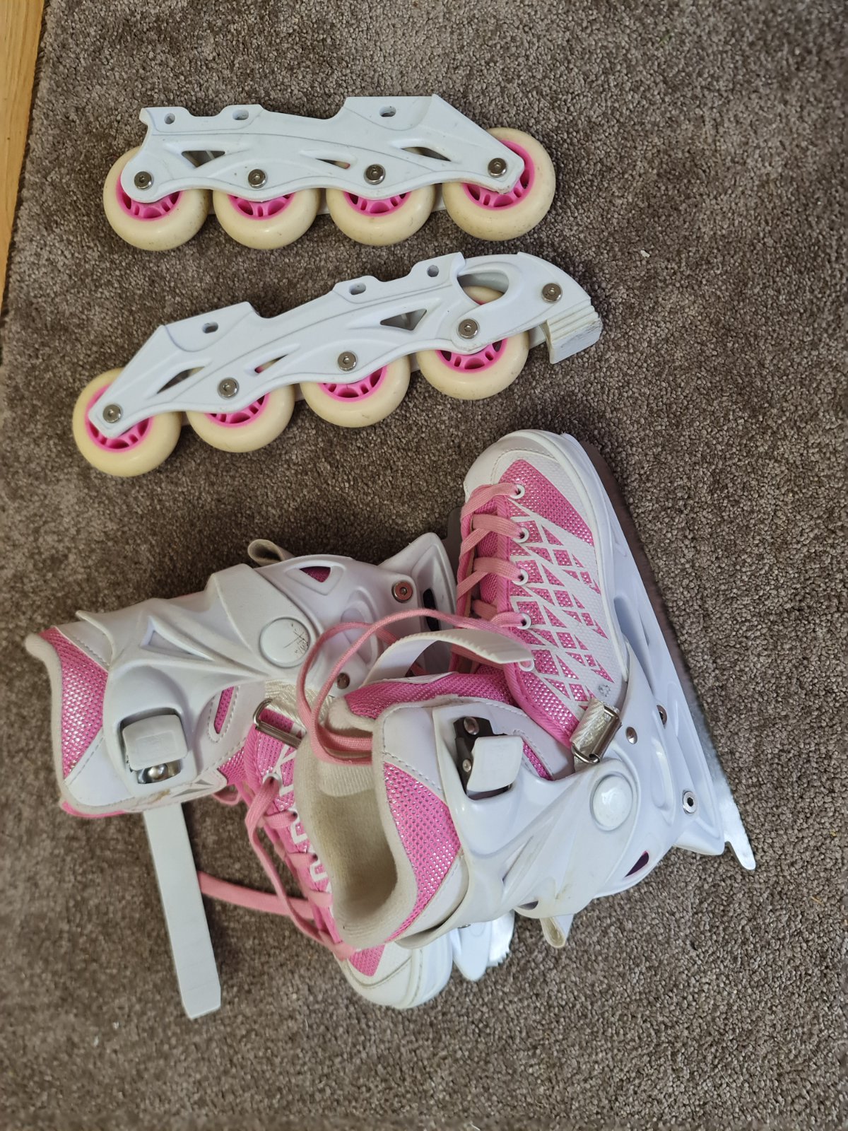 Predam nove, len po byte skusane kolieskove korcule. Noze na lad ani neskusane. Velkost sa prisposobuje v rozmedzi 31-34. Osobny odber Kosice.