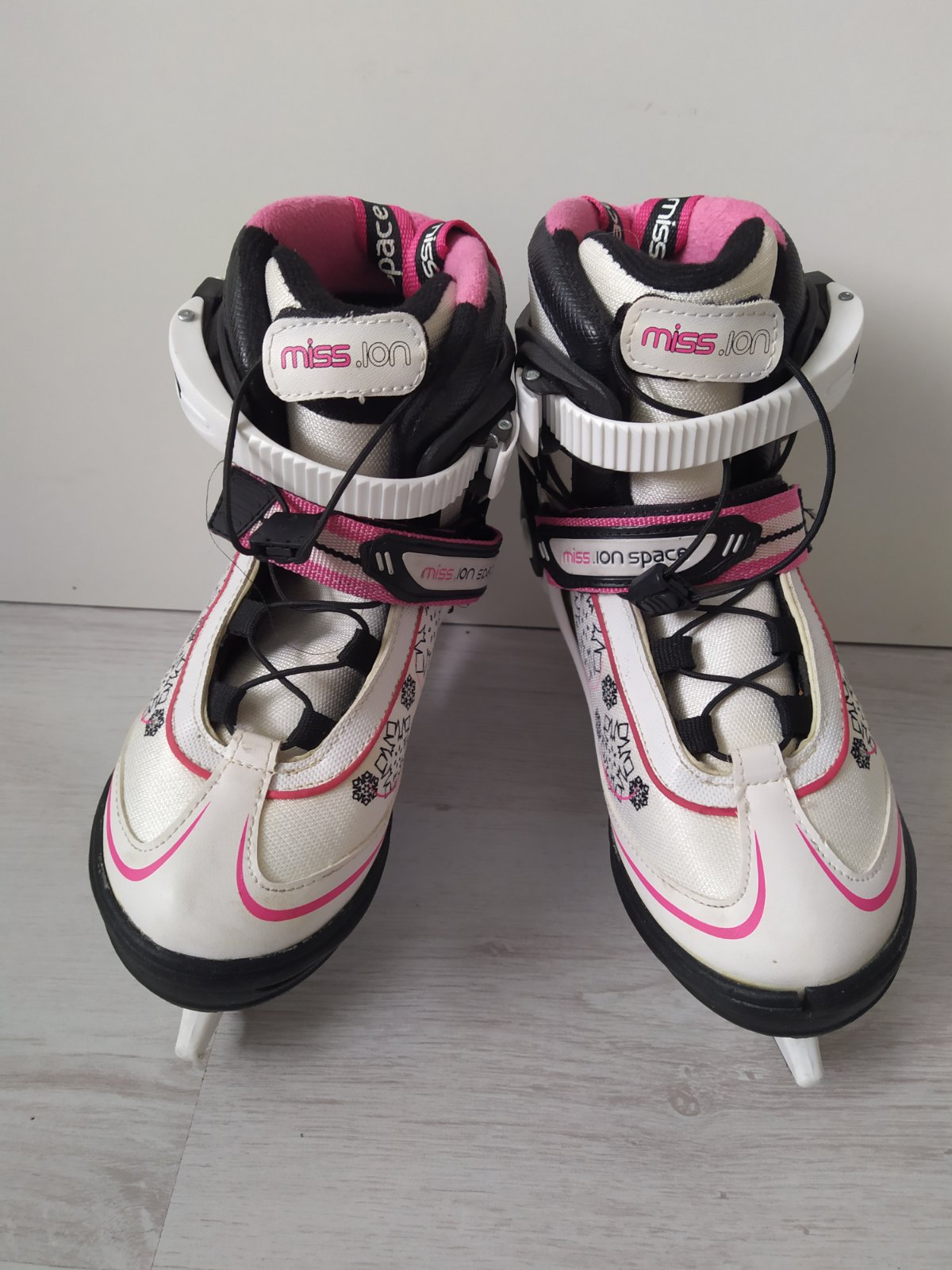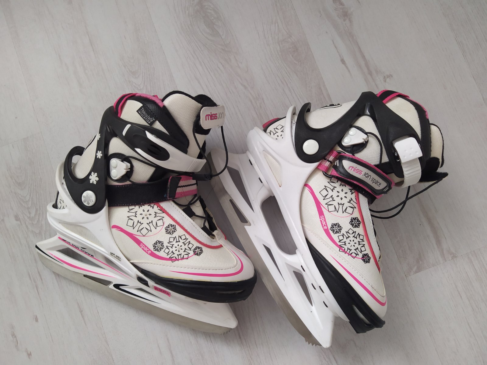 Dievčenské zimné korčule SPARTAN Jana s nastaviteľnou veľkosťou v rozsahu 29 – 32. Korčule v originálnom balení, kúpené z druhej ruky takže vidno trochu povrchové ošúchanie, no potom vôbec nepouží...