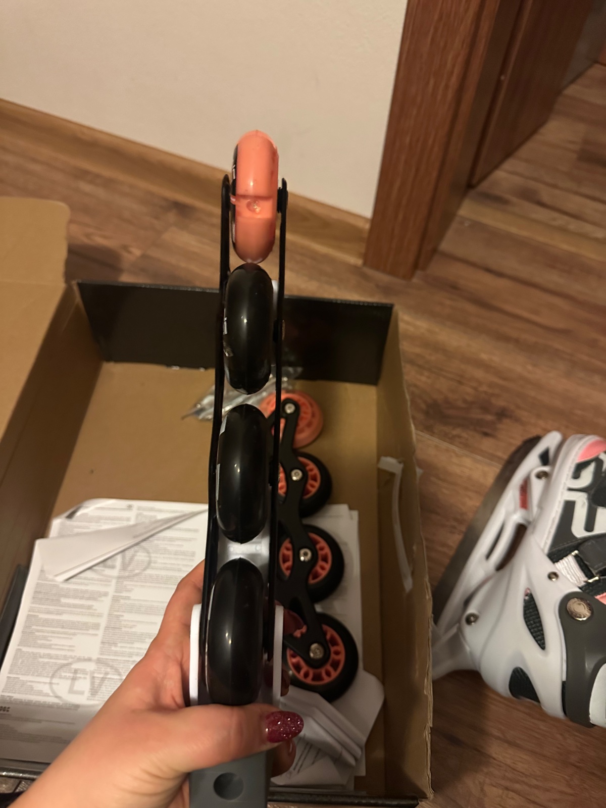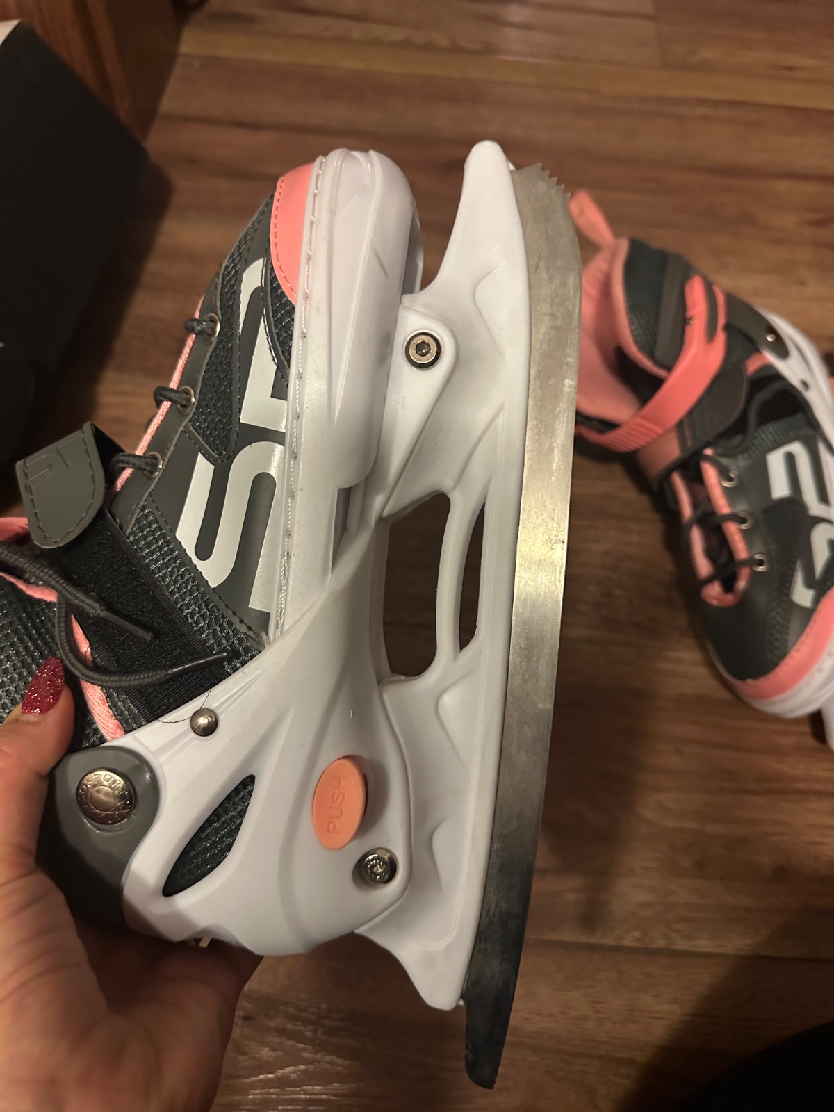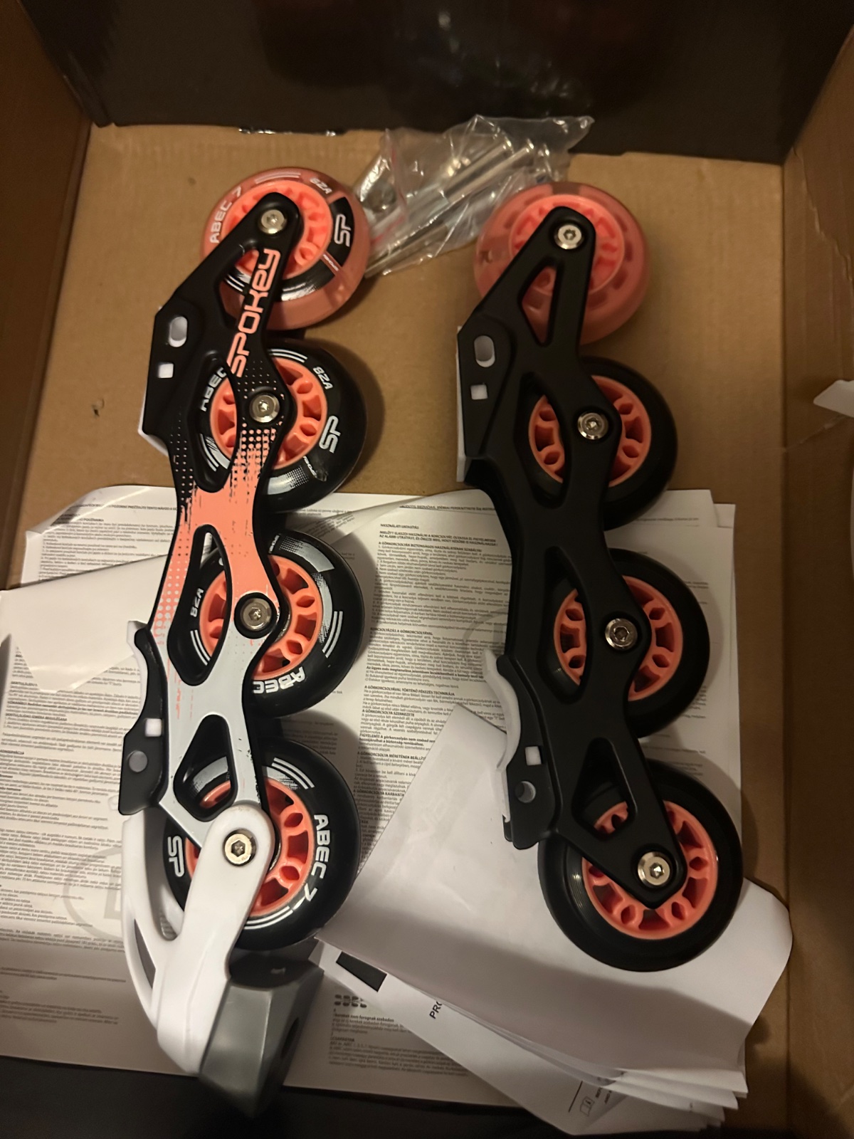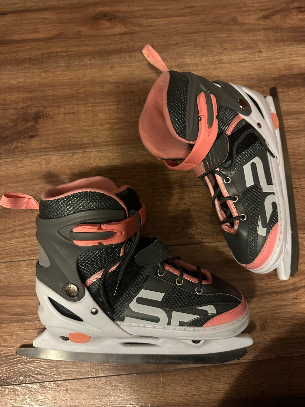 Nastaviteľné korčule veľkosť S od 31 po 34 s vymeniteľnými podvozkom na zimné alebo letné korčuľovanie. Zimné : nerezový nôž dievčenský model s krasokorčuliarskym nožom so zubkami. Letné : kolies...