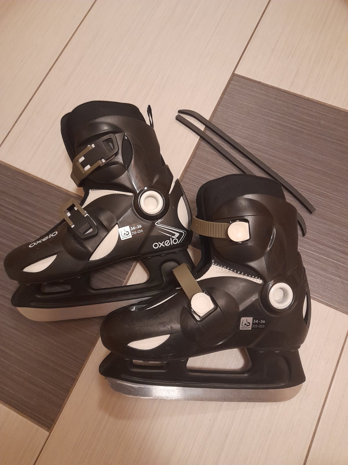 Používané chlapčenské korčule s nastaviteľnou veľ.34-36 značky Oxelo. Súčasťou sú aj kritky na nože.Len osobný odber PK.