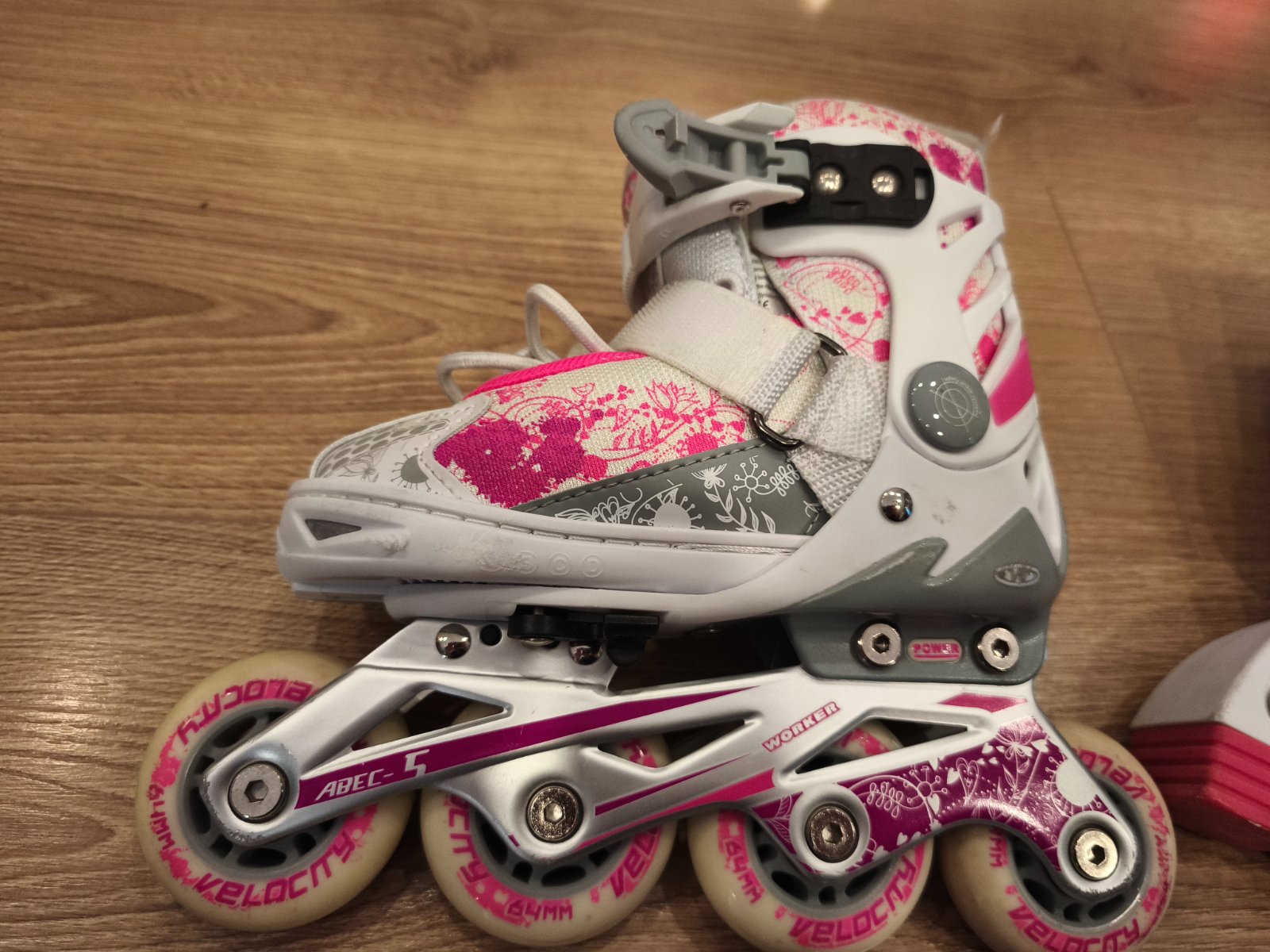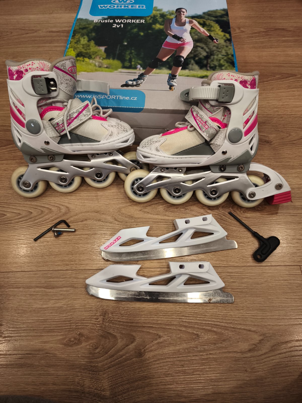 Dievčenské korčule Worker 2v1, nastaviteľná veľkosť XS 27 - 30, drobné odreniny, zošednutie bielej látky, inak bez poškodenia