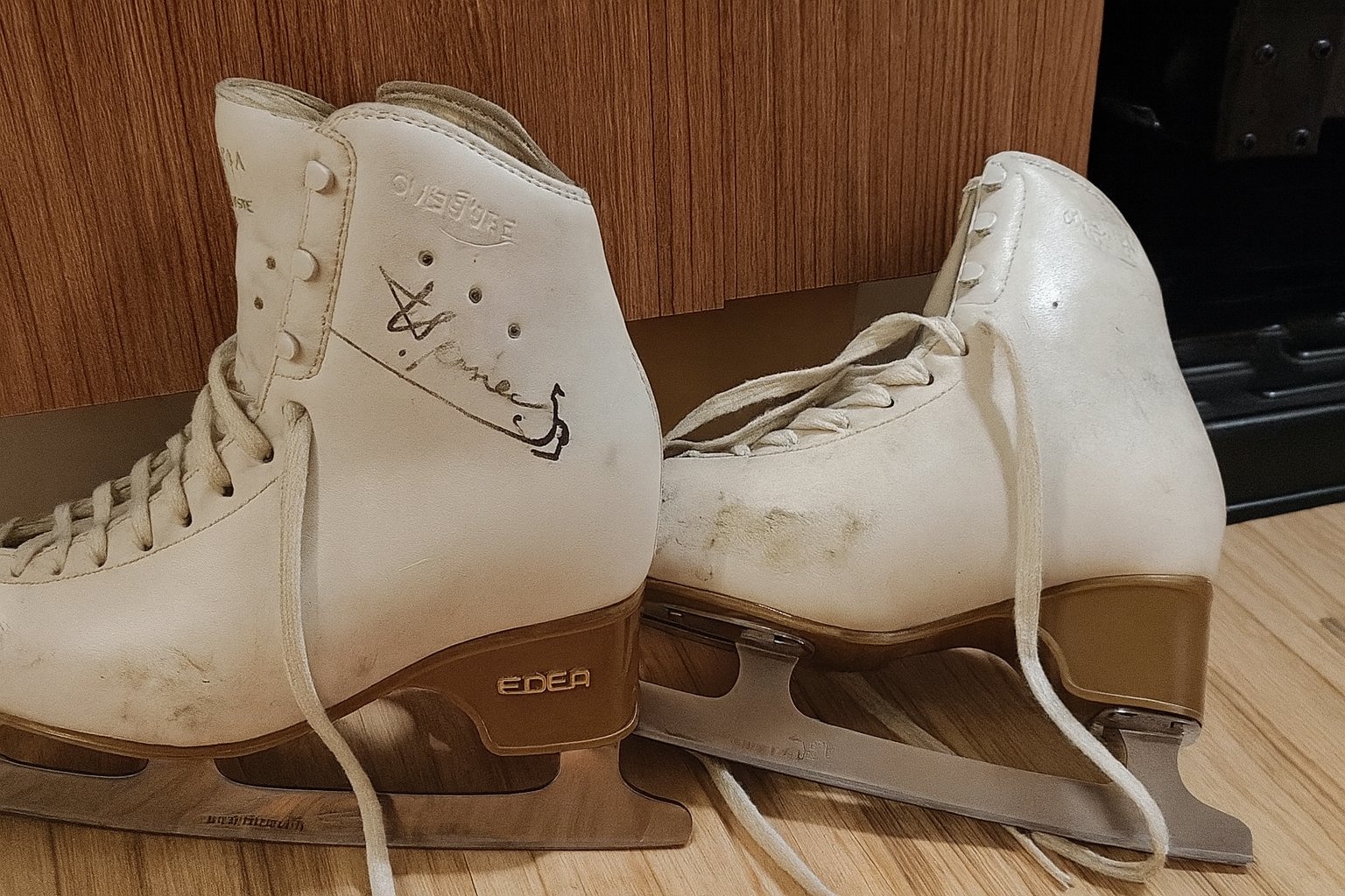 Predám kvalitné krasokorčuliarske topánky EDEA OVERTURE vo veľkosti 235 – s autentickým podpisom Tomáša Vernera, majstra Európy z roku 2008.