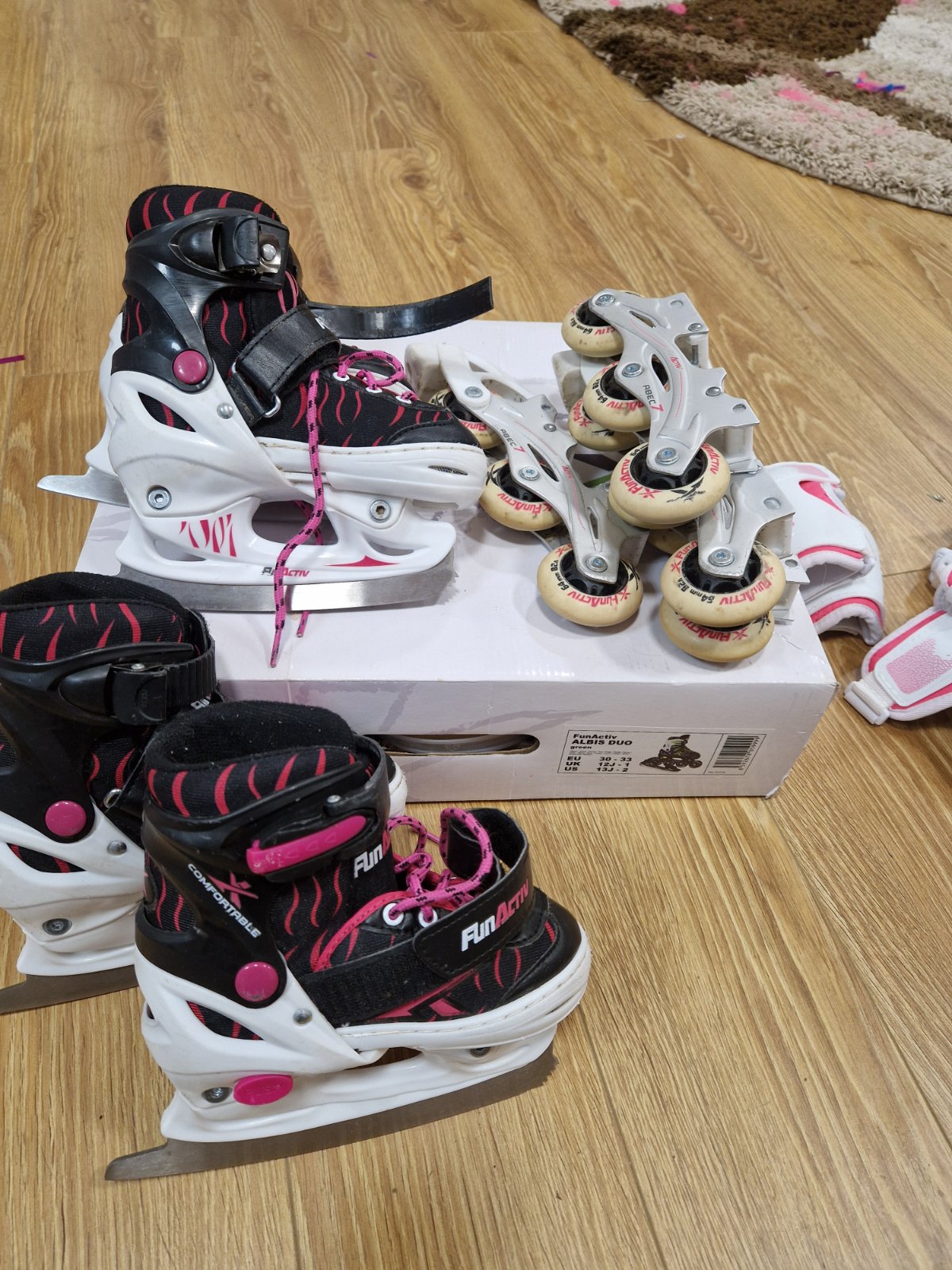 Predám korčule 2 v 1 ( celoročné použitie - nože na ľad a kolieska sa dajú vymieňať) .