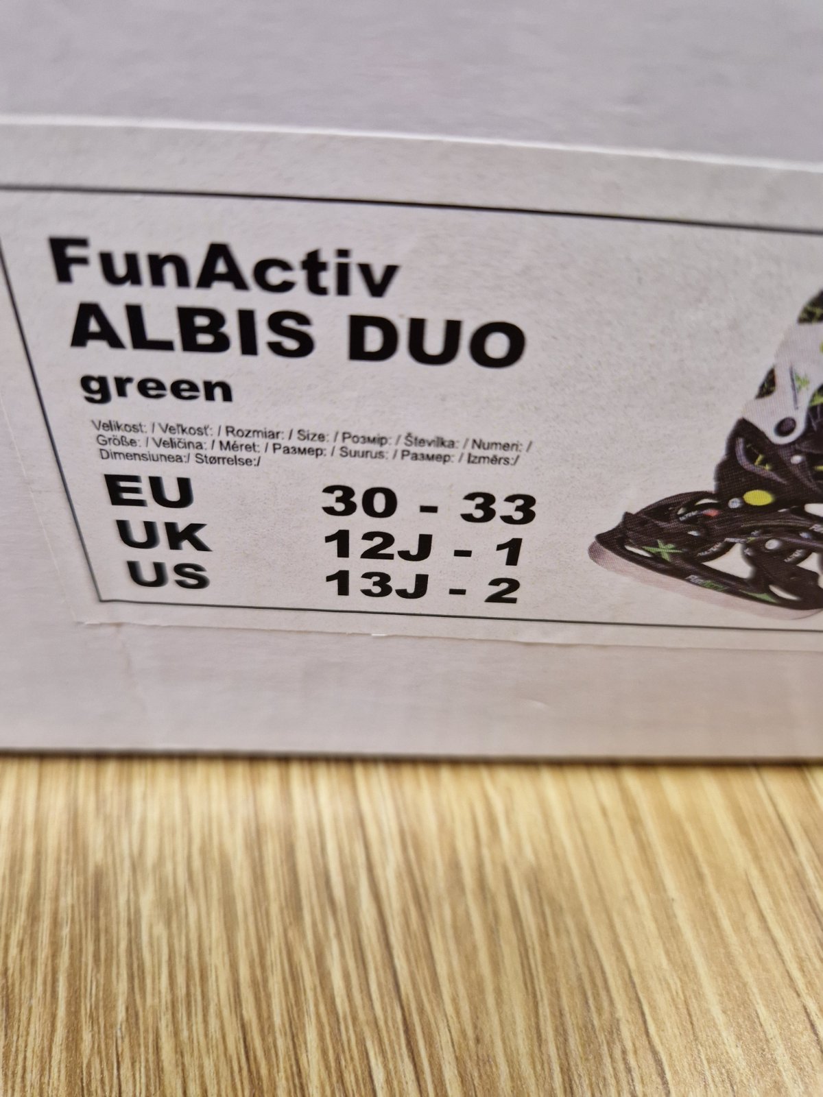 Veľkosť sa dá posúvať po stlačení ružového tlačítka pri päte - čiže od veľkosti 30 do veľkosti 33.