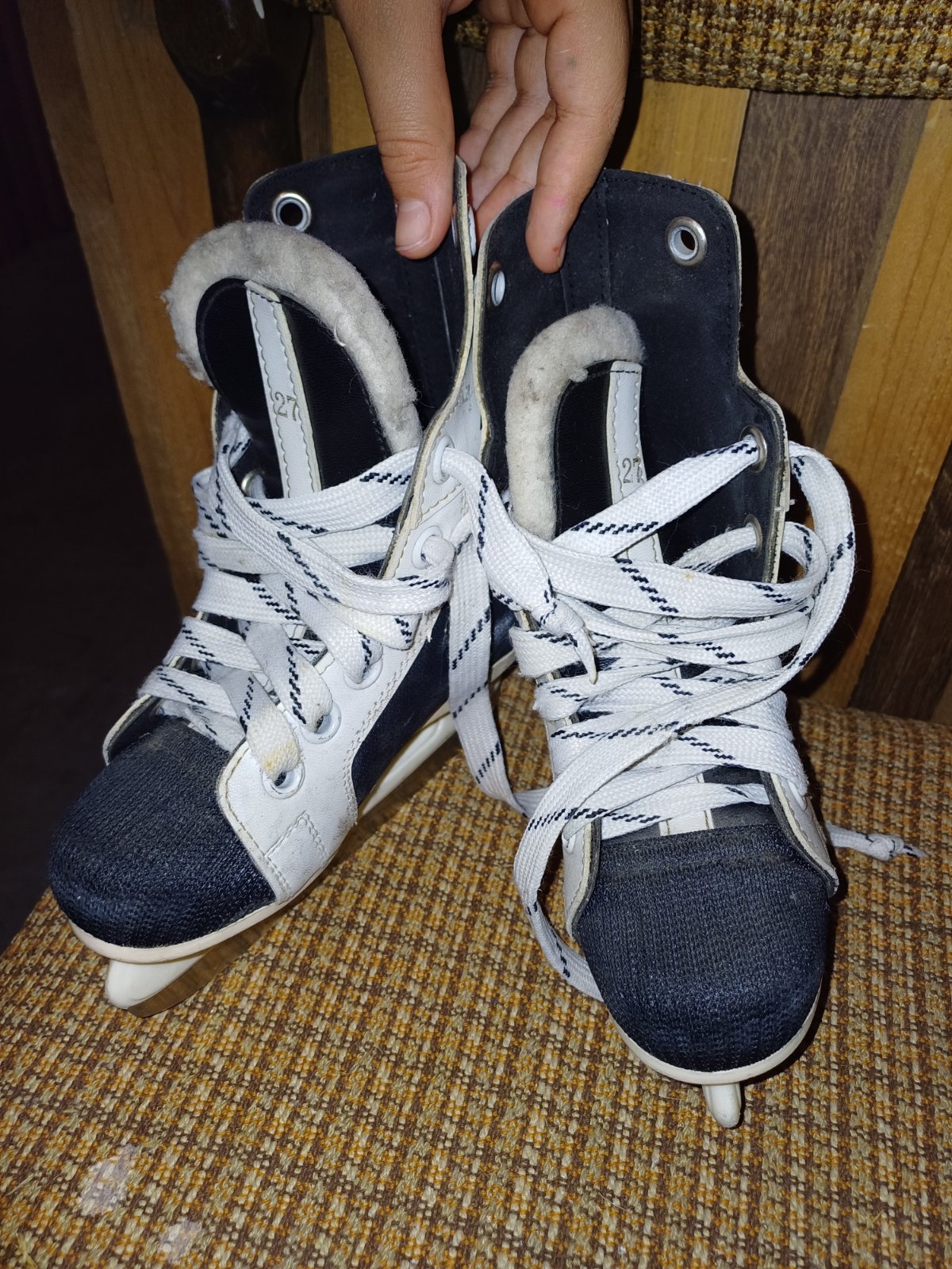 Predám detské korčule na ľad vel.27 .sú používané ale v dobrom stave. Určite ešte poslúžia 😁😊 Boli dlhšie v pivnici nič im nieje len sú zaprášené .