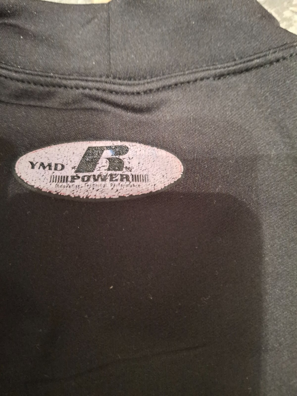 Vrchný diel spodneho oblecenia hokejistu. Značka Russell YMD Power. Je bez dier a flakov. Elastický material. Na niektorých miestach sa nám parala nit v švoch, je to pozašívané. Celkova dlzka 58 cm, dlzka rukava 53 cm, rameno 7 cm.