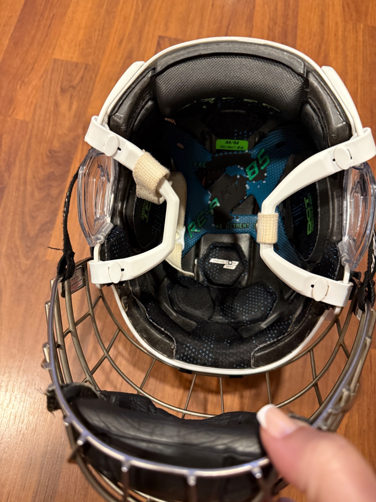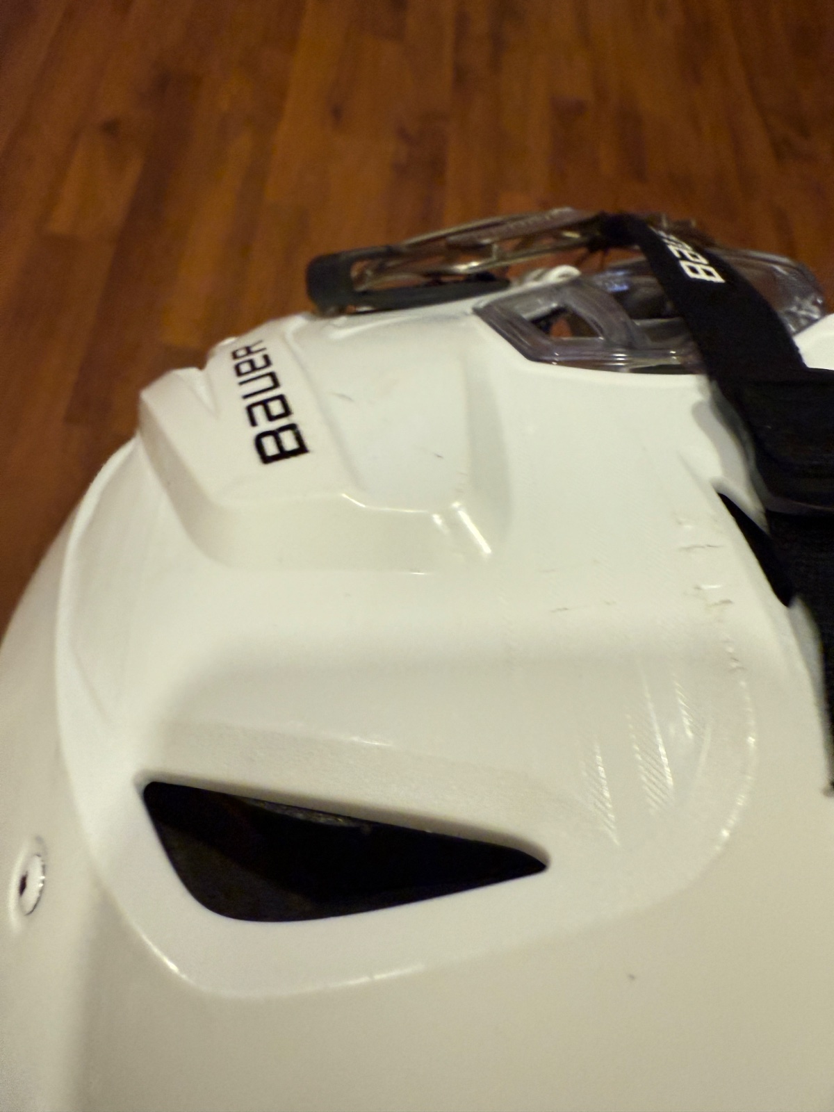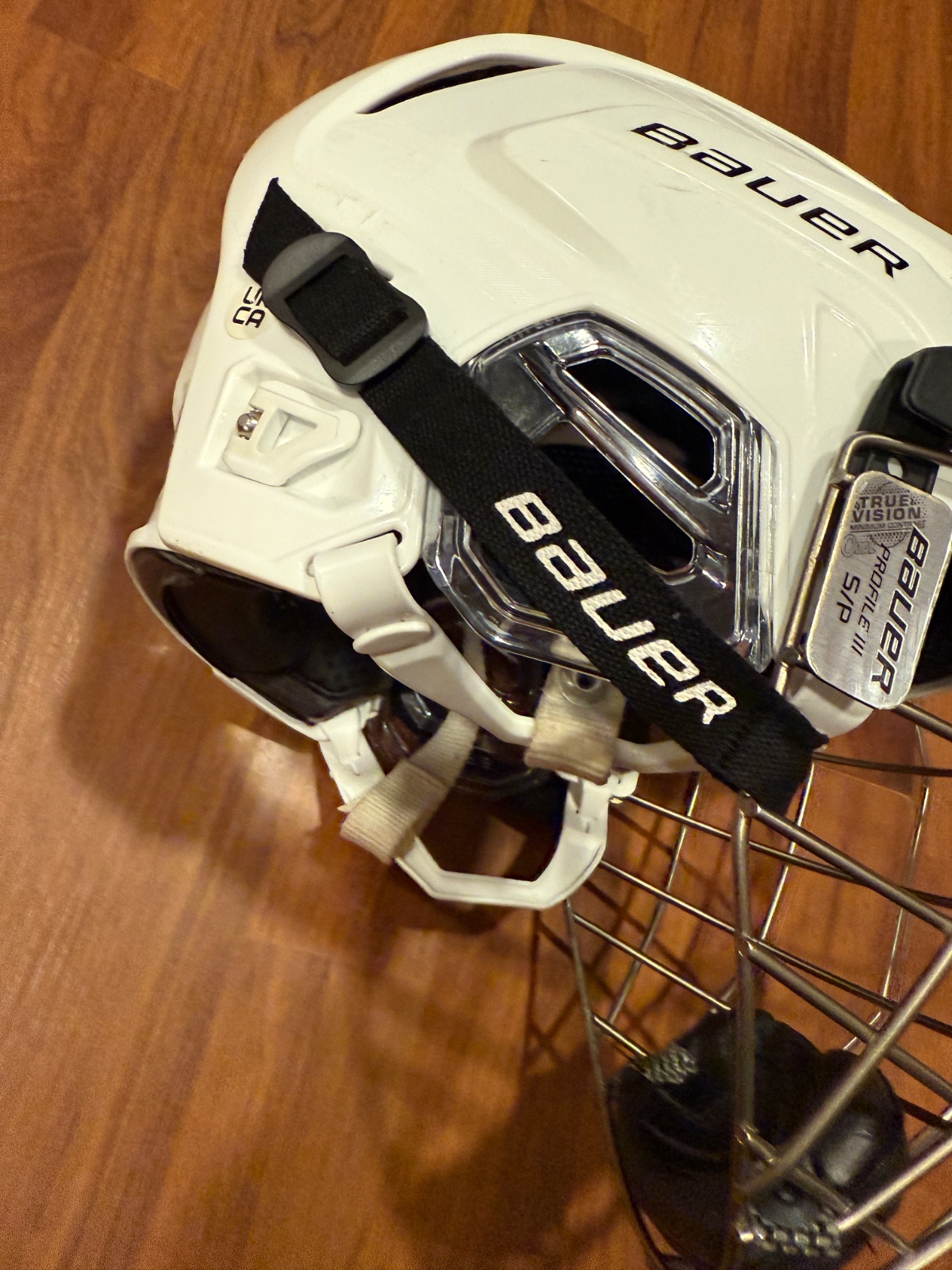 Predám hokejovú prilbu Bauer Re-Akt 95 (veľkosť M/M), biela farba, s kompletnou kovovou mriežkou Bauer Profile III True Vision.
